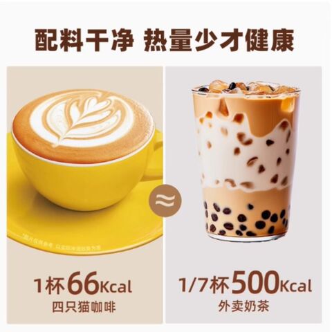四只猫 云南0植脂末特浓卡布奇诺蓝山拿铁速溶咖啡粉冲调饮料送杯