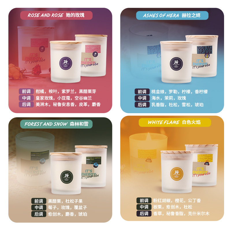 2026米兰冬奥会磨砂玻璃款香薰蜡烛白噪音生日新年礼物大容量160g