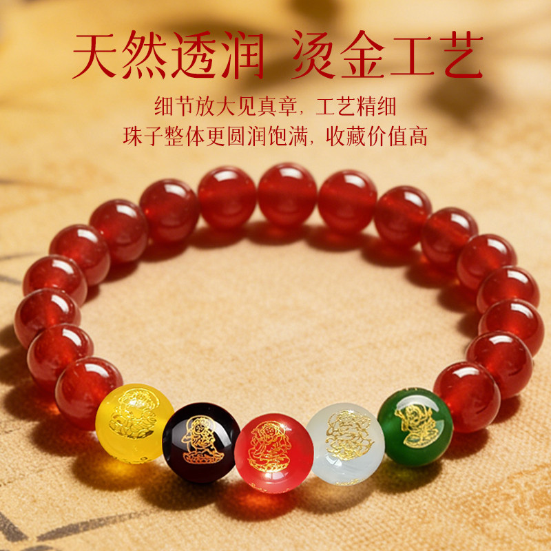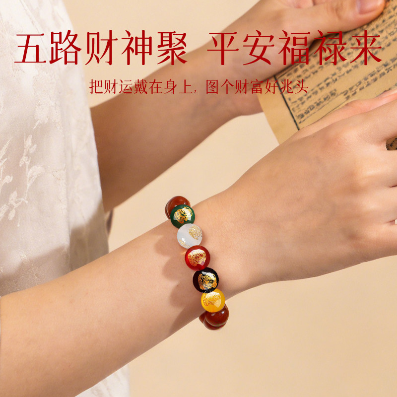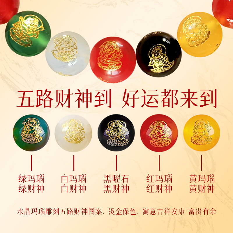 普陀山五路财神玛瑙手串黑曜石手串马年本命年女士礼物好运旗舰店