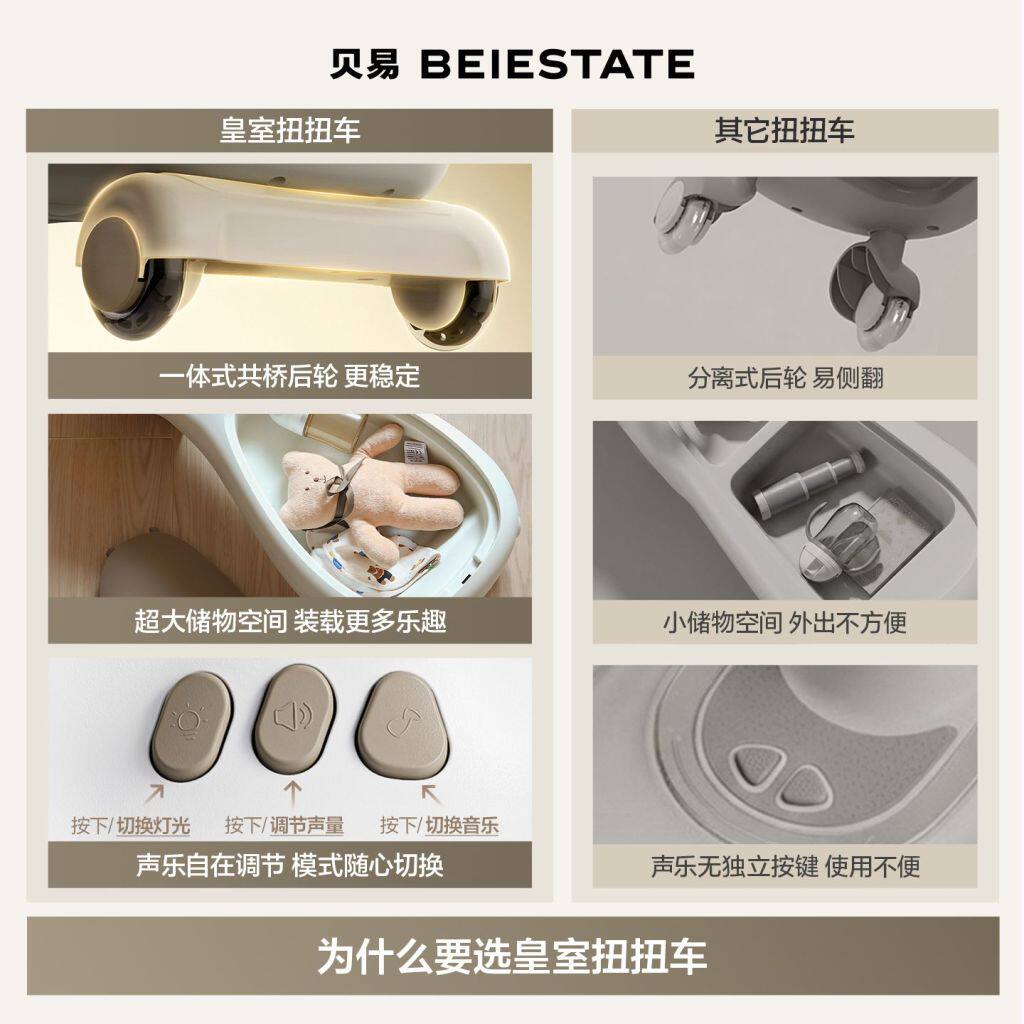 贝易皇室扭扭车带拖斗儿童2岁轻音防侧翻溜溜车 双人可坐