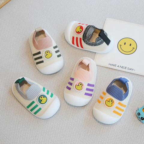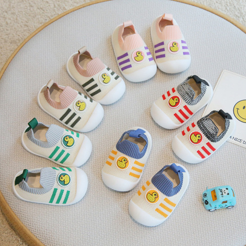 新款春秋网面男宝宝学步鞋,透气柔软防滑,适合幼儿脚型,舒适安全。飞织材质轻便透气,宝宝学步更轻松!