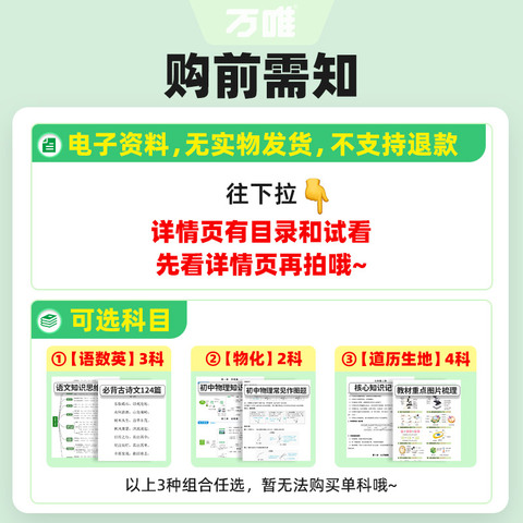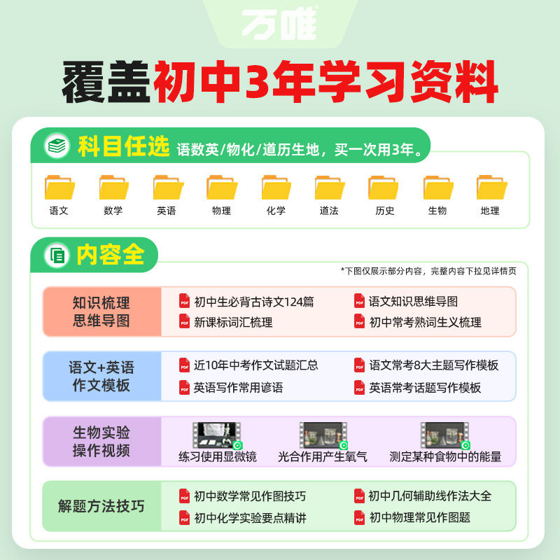 万唯中考电子学习资料,涵盖七八九年级语数英物化道历生地全科,知识点全面,助力中考冲刺!备考更高效!