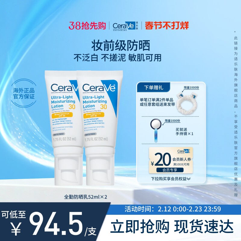 【海外店】CeraVe适乐肤全勤防晒乳清爽不油腻官方正品男女士专用 【售价】:¥134.00 【券后】:¥115.00 【优惠券】:¥19 推荐理由:【海外店】CeraVe适乐肤全勤防晒乳清爽不油腻官方正品男女士专用 👉复制这条信息打开【手机淘宝APP】即可领券购买:/