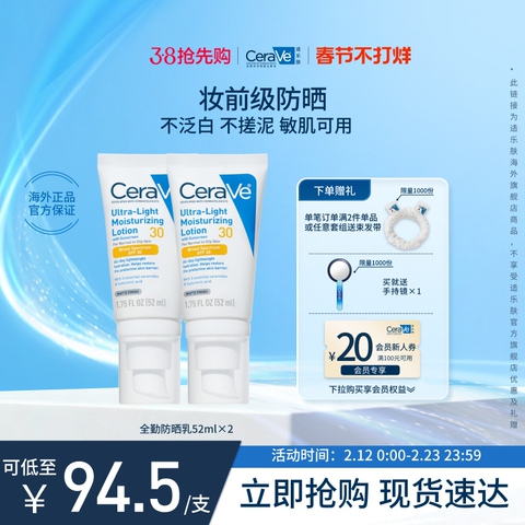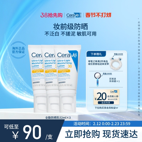 【海外店】CeraVe适乐肤全勤防晒乳清爽不油腻官方正品男女士专用