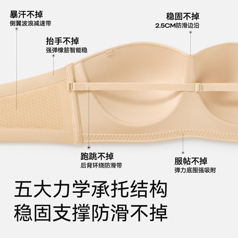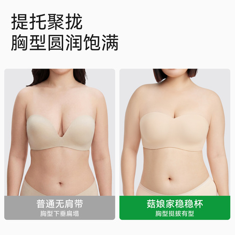 菇娘家稳稳杯无肩带内衣女大胸美背防滑隐形抹胸裹胸无痕聚拢文胸