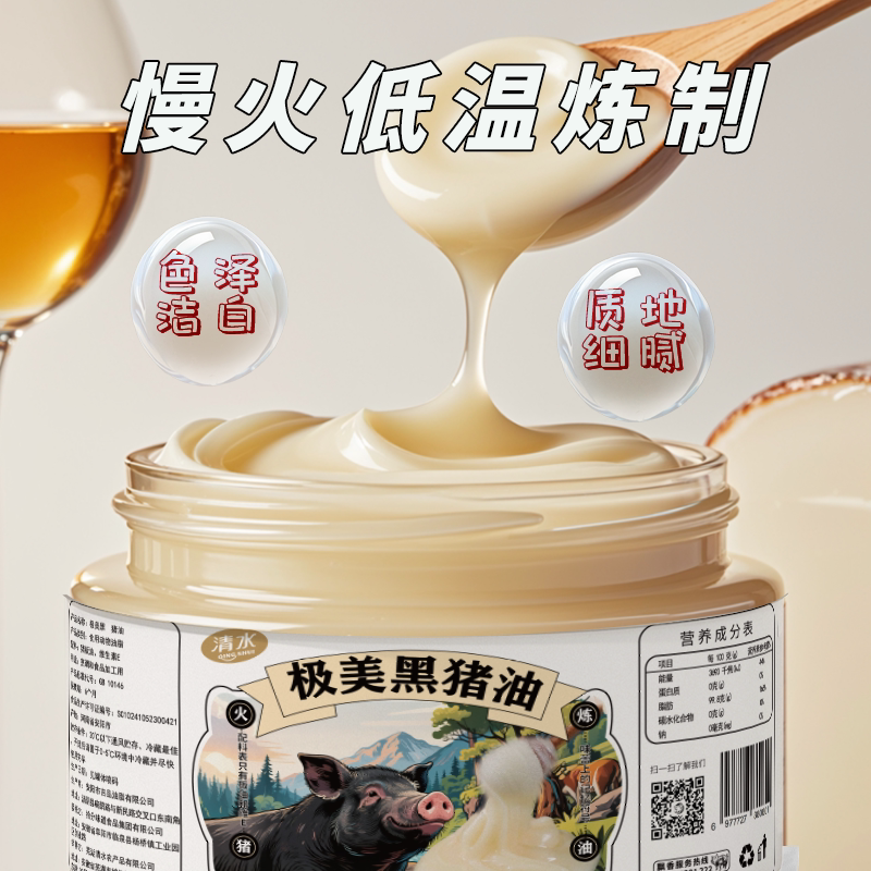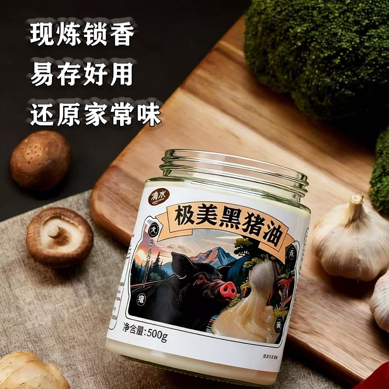 黑猪油纯天然无添加,家用炒菜拌饭皆宜,香浓浓郁,提升菜品风味!适合家庭及商用,土猪油品质更佳,烘焙起酥更美味!