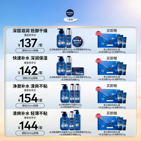 妮维雅男士小蓝管48H保湿补水 【售价】:¥169.00 【券后】:¥132.00 【优惠券】:¥37 推荐理由:88vip叠消费券+立减+4啕琻币,到手(洁面+水+乳液)[\u1f4b0]112.2亓 (赠限定信封礼盒+水活洁面50g+水活精华乳10g+男士洗漱包[礼物]) 3⃣步摆脱糙暗黄!这才是男生该买的护肤品! 👉复制这条信息打开【手机淘宝APP】即可领券购买:/