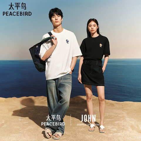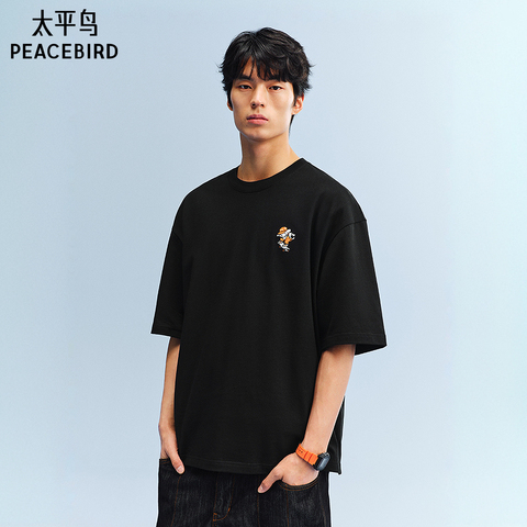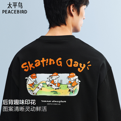 太平鸟男装 滑板小狗联名纯棉后背印花短袖T恤26夏新款宽松体恤衫