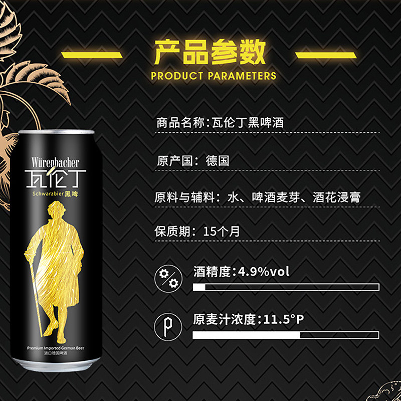 【进口黑啤】瓦伦丁德国原装黑啤酒,焦香爽口,纯正德式风味!瓶装口感醇厚,适合聚会畅饮,拍2件享优惠价!