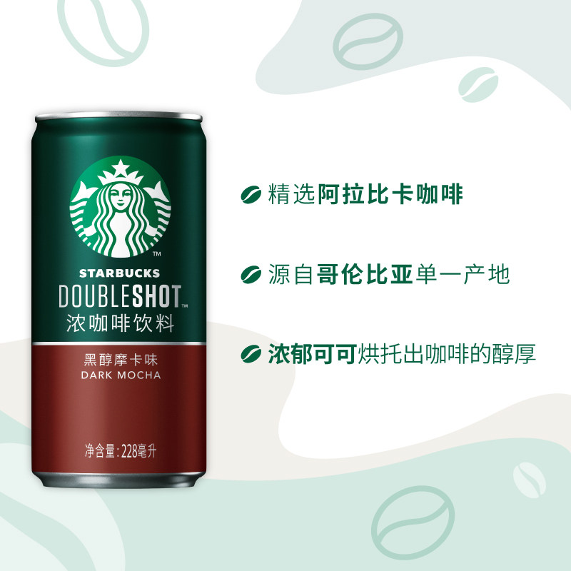 Starbucks/星巴克星倍醇小绿罐黑醇摩卡浓咖啡饮料(X2倍咖啡因)