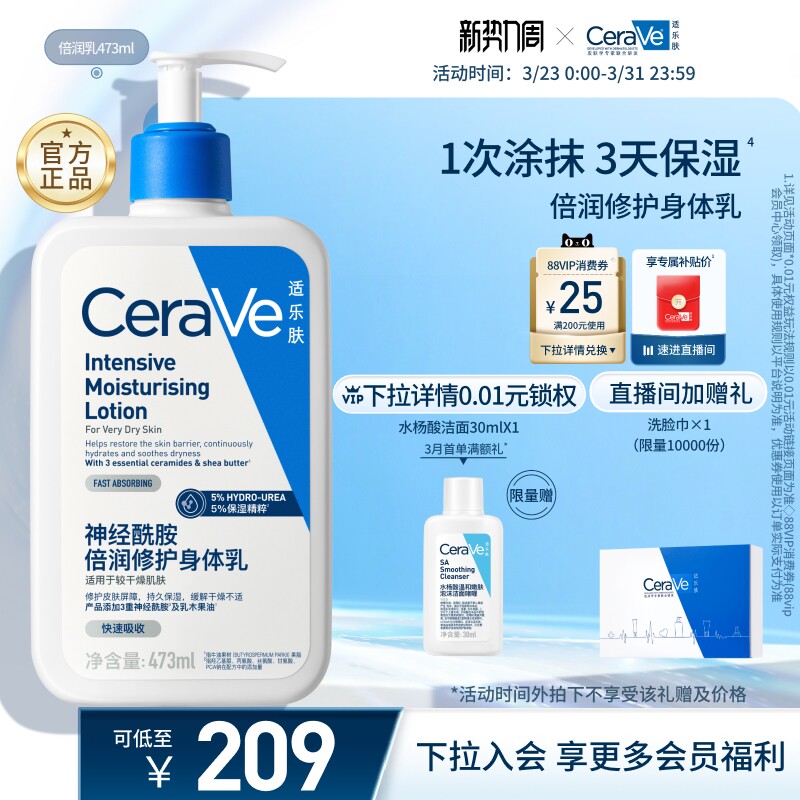 【张凌赫同款;券满161减25!!下单立减20元!店铺新客减5元!】CeraVe适乐肤身体乳,含神经酰胺强效滋润,修复干痒肌肤,清爽不粘腻,保湿一整天!官方正品,呵护每一寸肌肤!