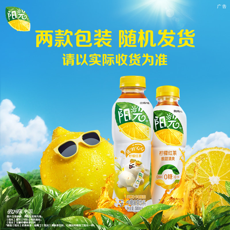 可口可乐 阳光茶饮料无糖柠檬红茶整箱饮料