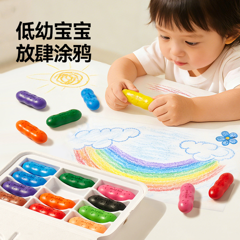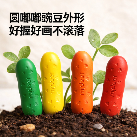 【27.9】,mideer弥鹿儿童豌豆蜡笔婴幼儿园专用美术专业可水洗无毒不脏手油性画笔宝宝安全玩具不粘手油画棒花生蜡笔