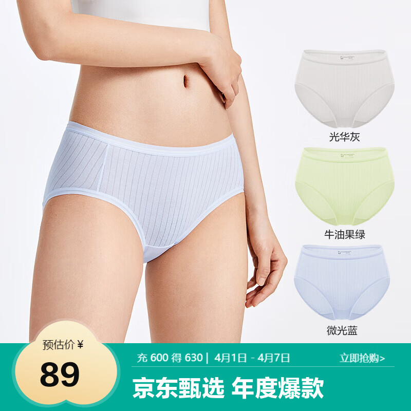 全棉时代京东专供女士内裤【5A抗菌透气】95棉成人内裤女士自营3条装