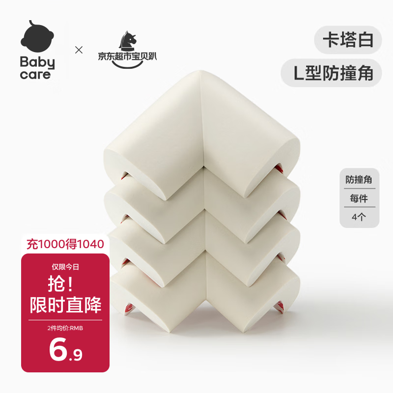 babycare防撞护角宝宝安全婴儿防磕碰护头儿童桌角贴 保护套L型卡塔白-4个
