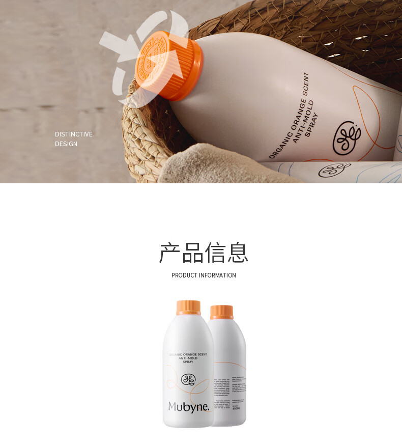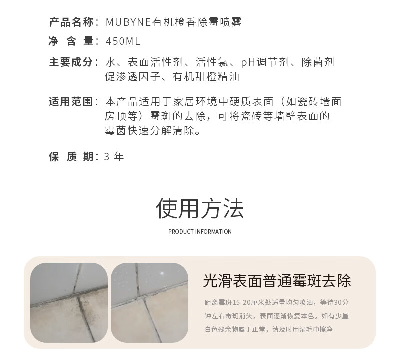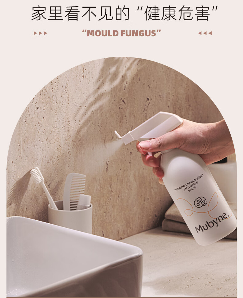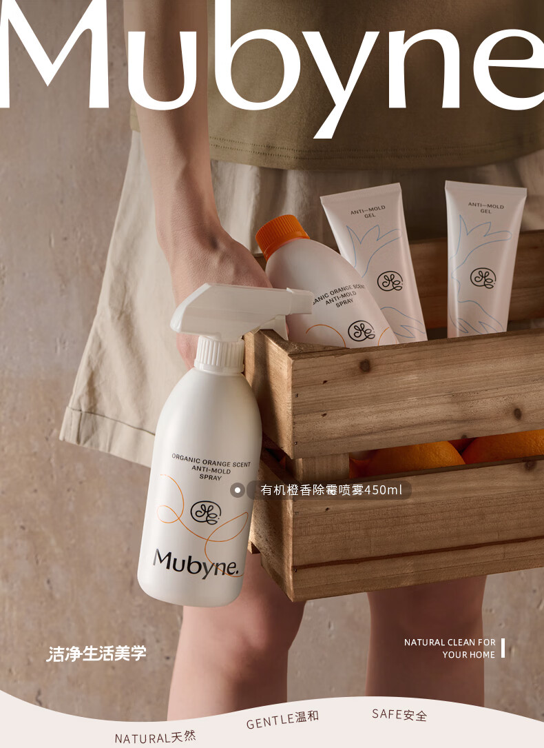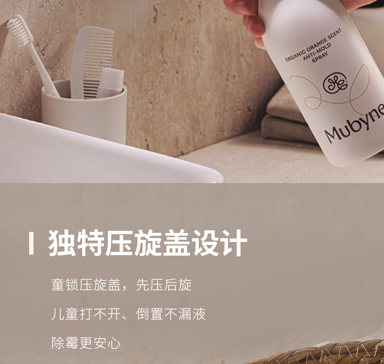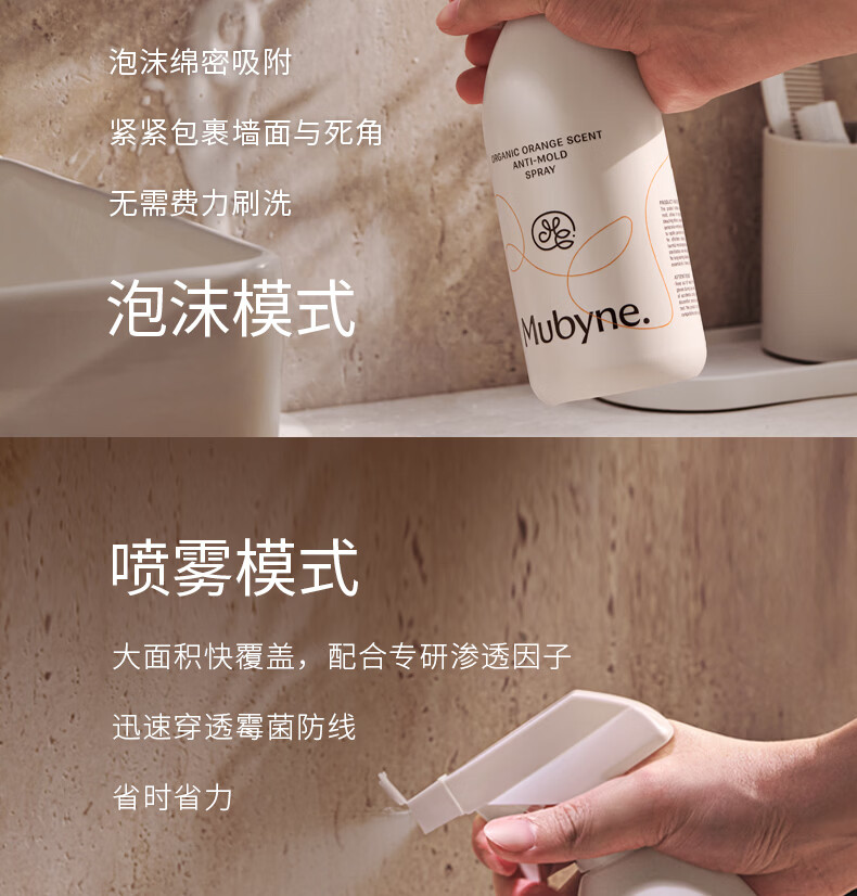 MUBYNE有机甜橙香除霉喷雾家用墙面洗手池台浴室柜木板去除霉菌剂 一瓶喷雾【450ml】+一支啫喱【120ml】