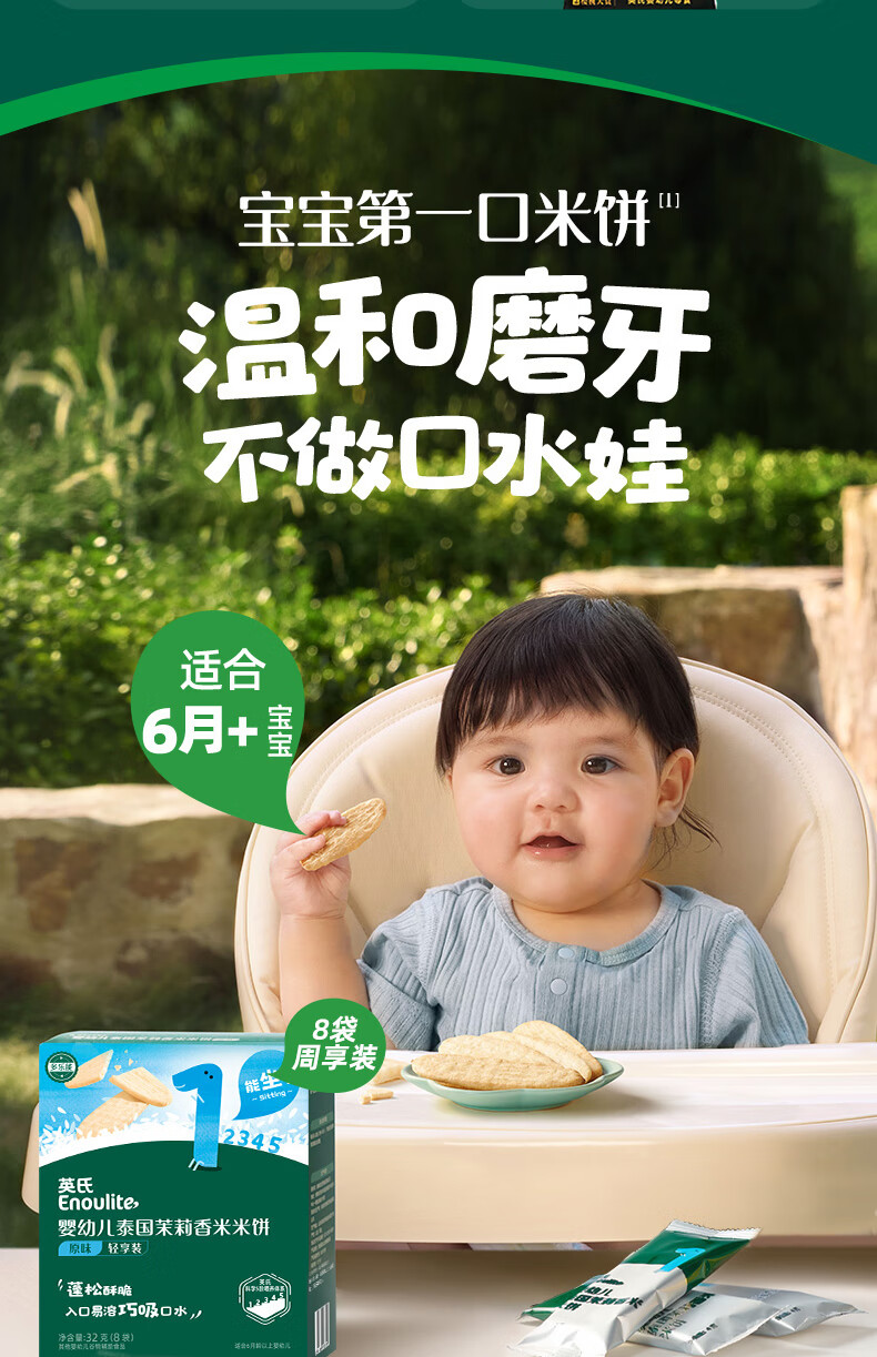 英氏(Engnice)婴幼儿米饼原味 婴儿零食磨牙饼干宝宝零食32g哄娃解馋6个月以上