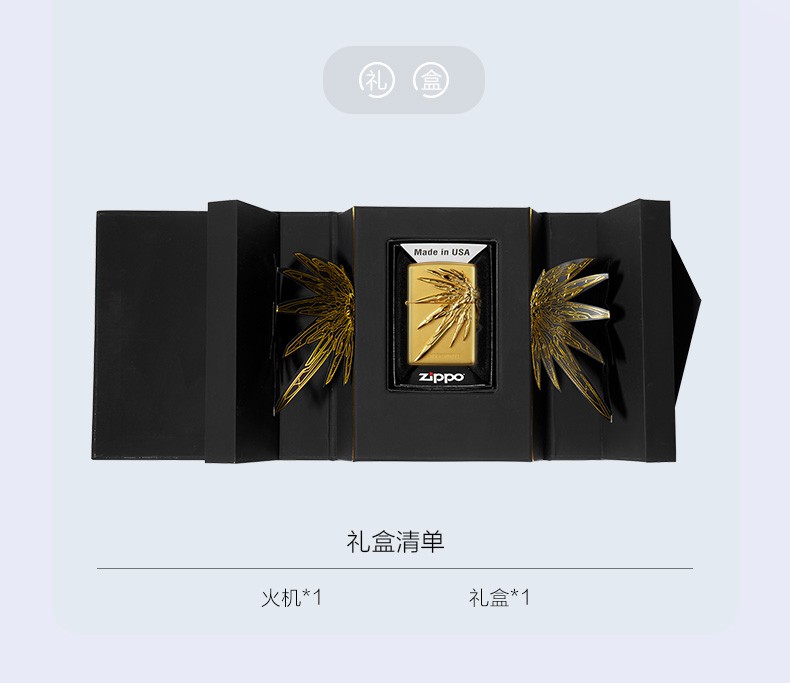 ZIPPO打火机防风煤油之宝创意徽章祈光之翼 生日礼物送男友送长辈