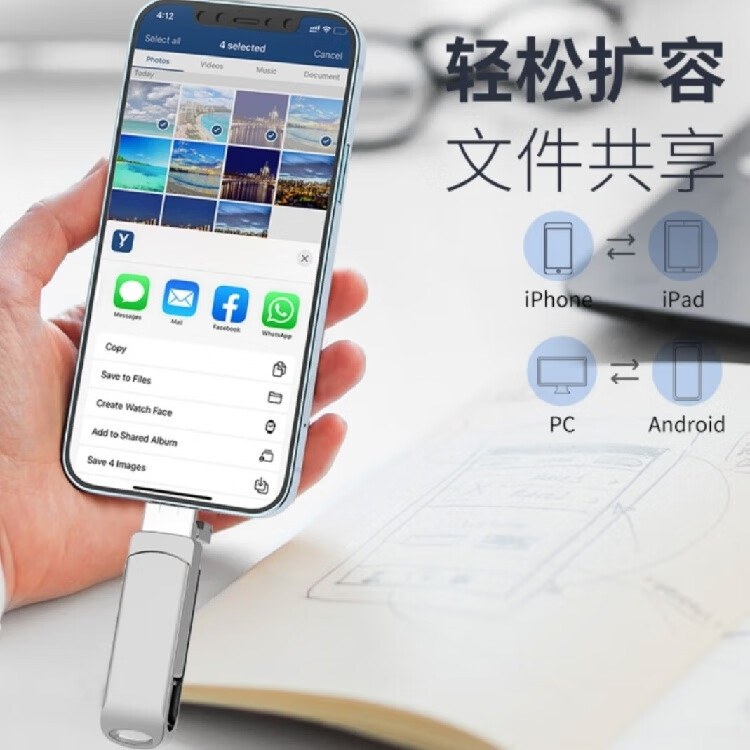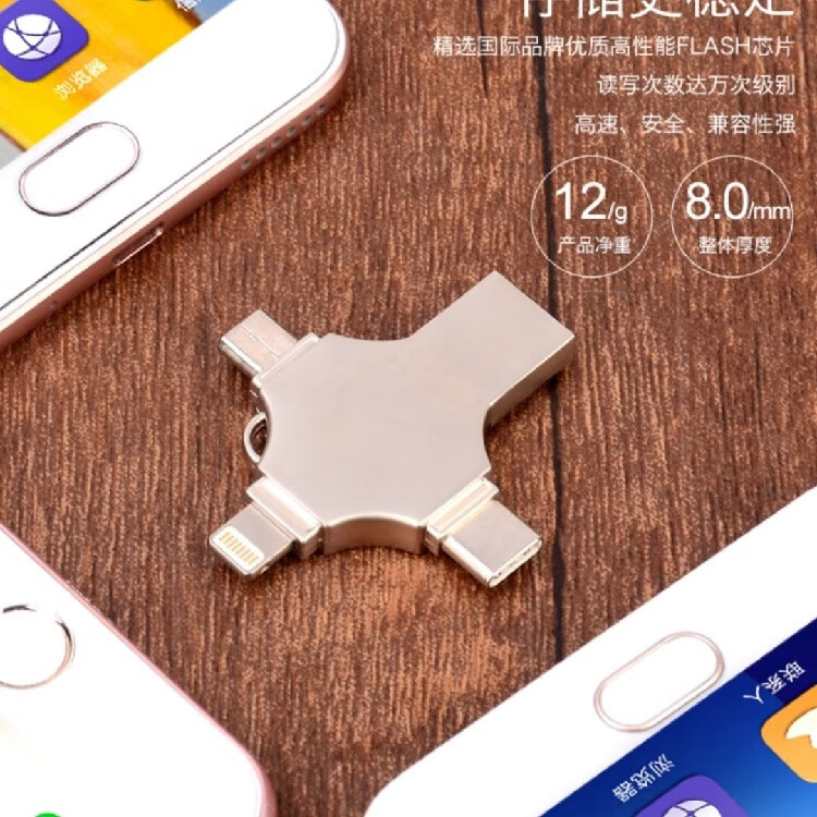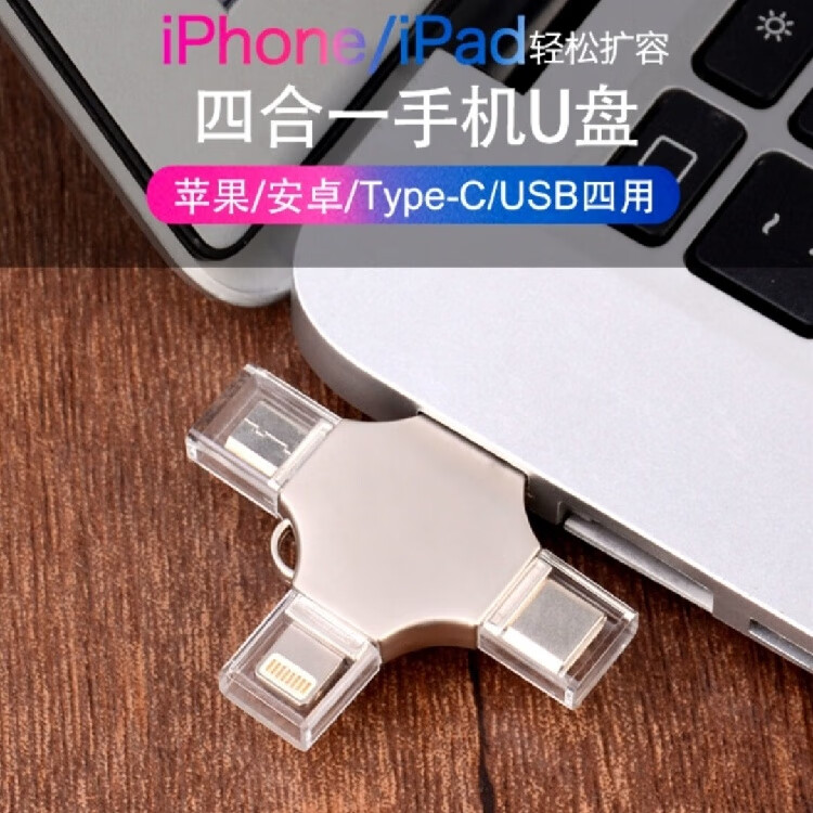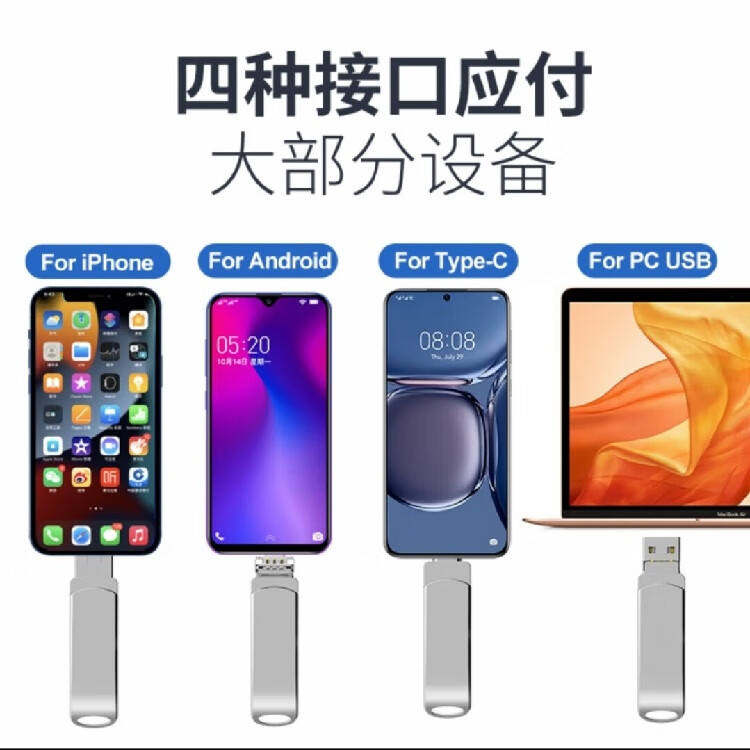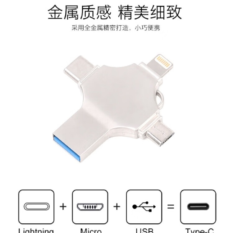 YB高速U盘2TB苹果typec多接口大容量手机电脑通用高速3.0存储扩容多功能礼品定制 十字四合一银128G[终身质保]