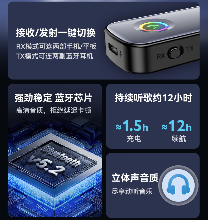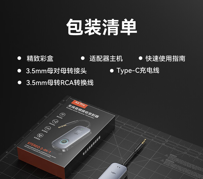 雷翼(RAYEE)蓝牙接收器发射器改装音响功放3.5mm音频适配手机接aux车载Switch电视接耳机音箱一拖二 蓝牙收发器【降噪过滤杂音】送线材套装