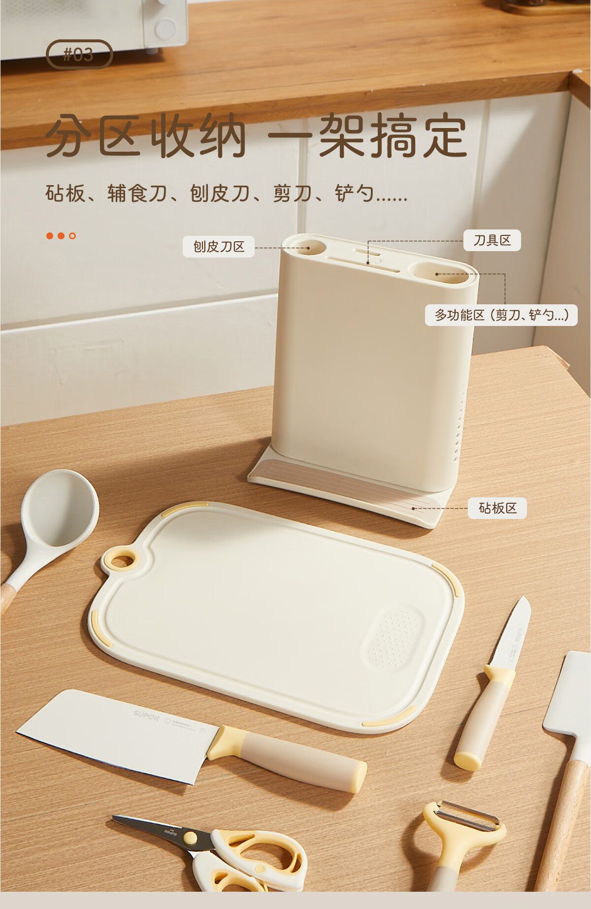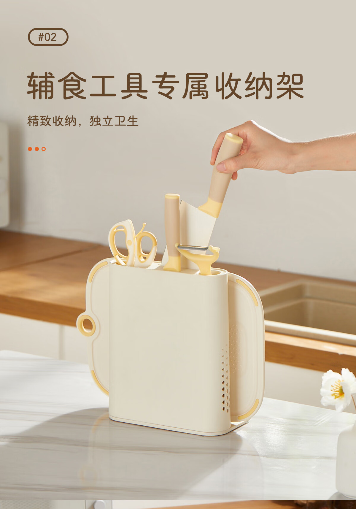 苏泊尔(SUPOR)辅食刀座宝宝工具儿童菜刀菜板剪刀套装收纳刀座 KEL001AE10