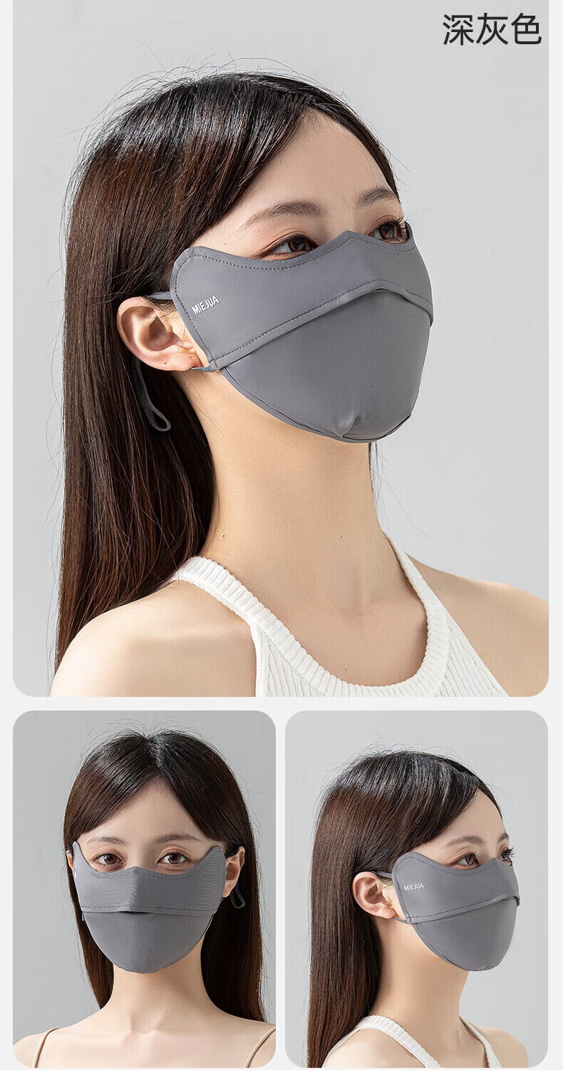 觅橘护眼角防晒口罩冰丝面罩脸罩防紫外线户外立体C 【护眼角款】-黑色