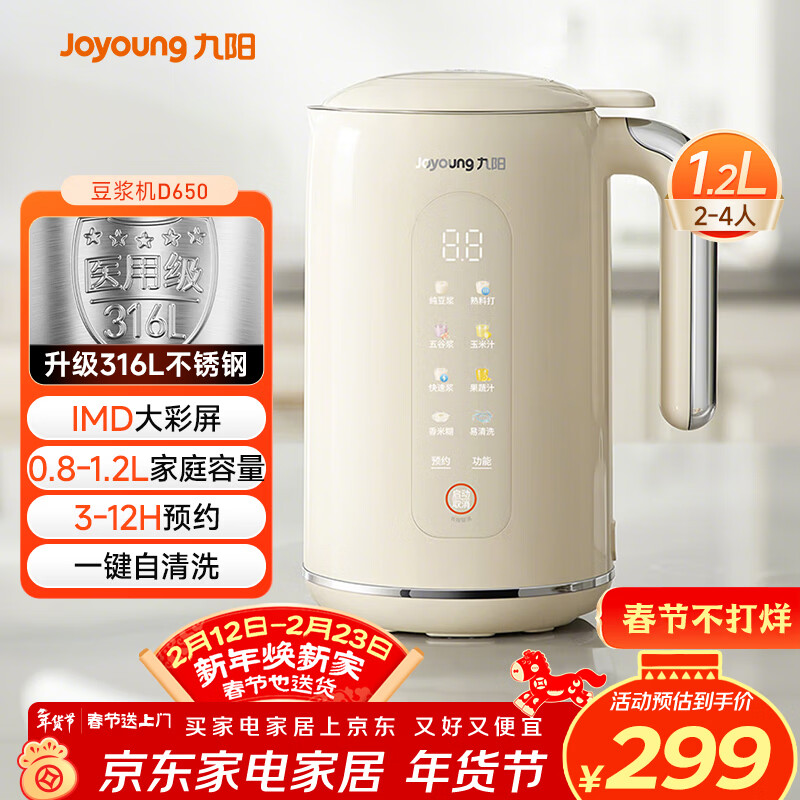九阳(Joyoung)破壁机0.8-1.2L豆浆机 IMD彩屏可预约2-4人用易清洗家用全自动料理机榨汁机D650