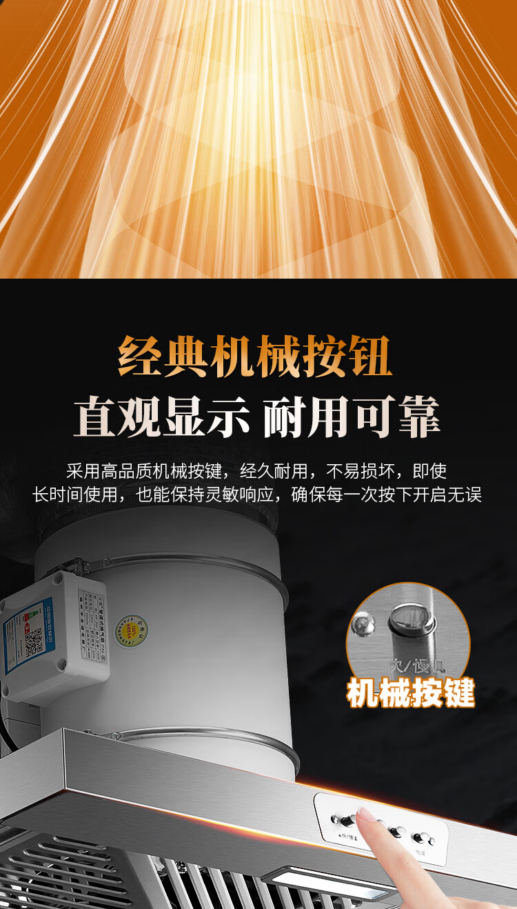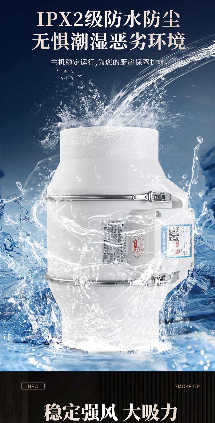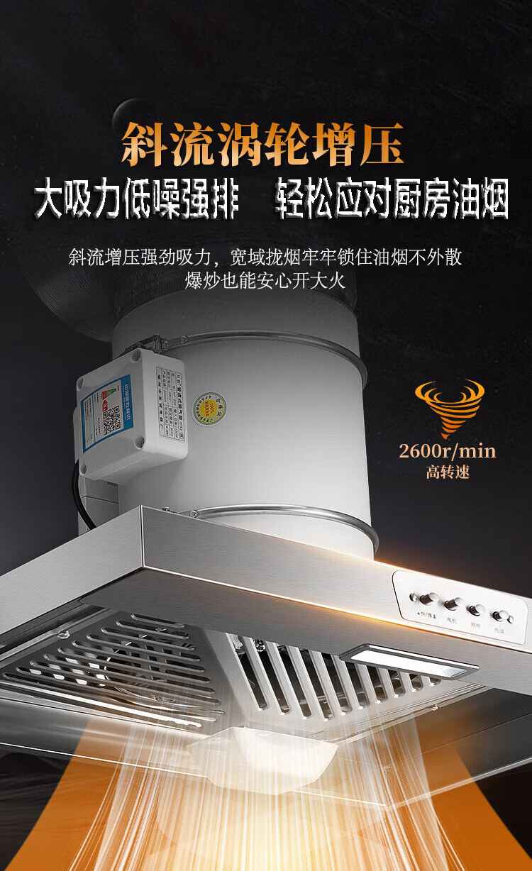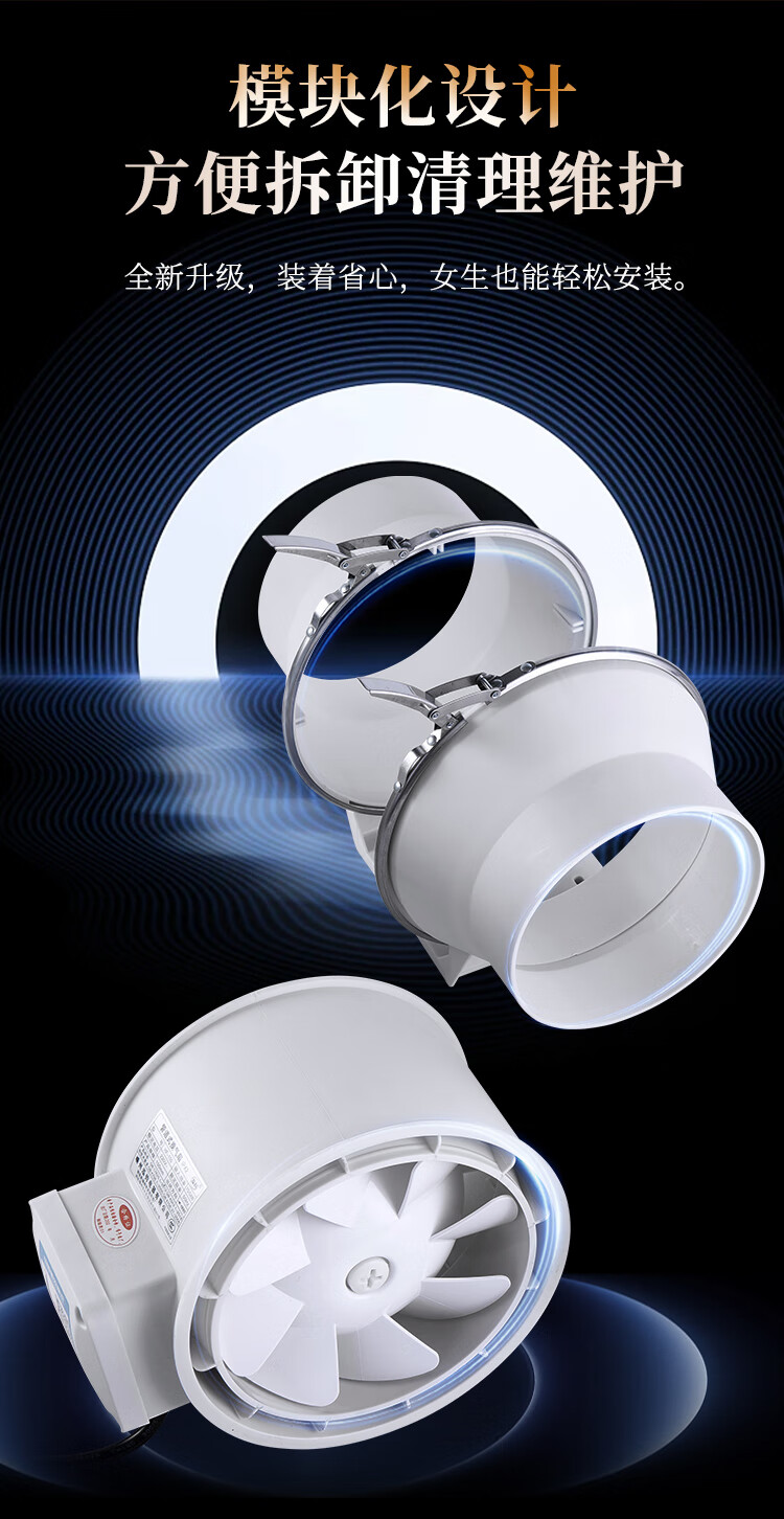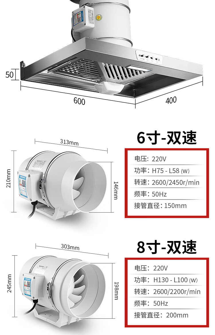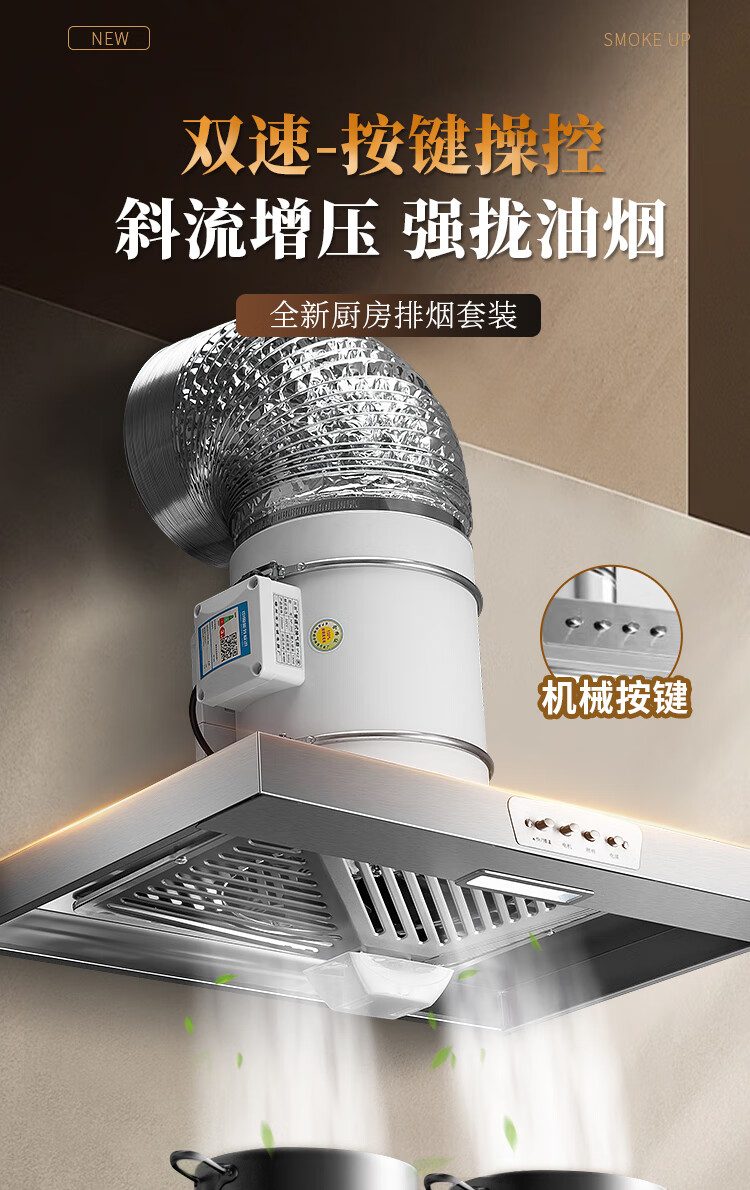 保力克厨房家电抽烟机大吸力油烟机家用不锈钢顶吸排油烟机出租房抽油烟机简易安装吸烟机 【斜流款按键款】6寸+1米管道+卡扣一个