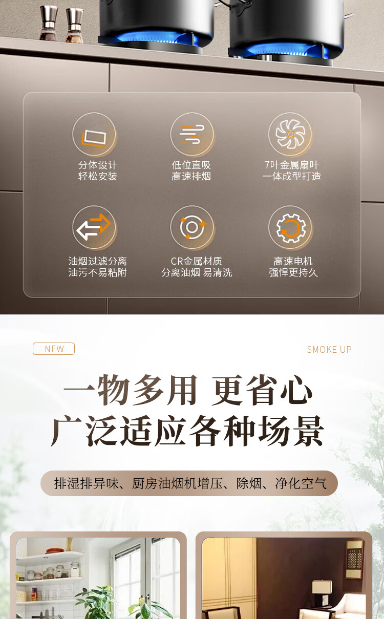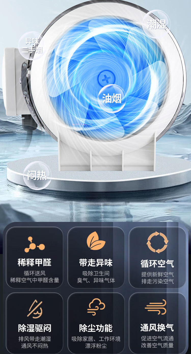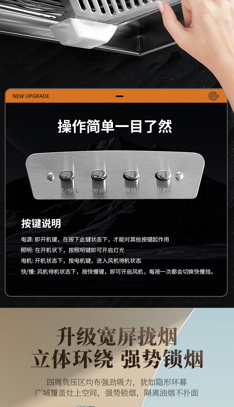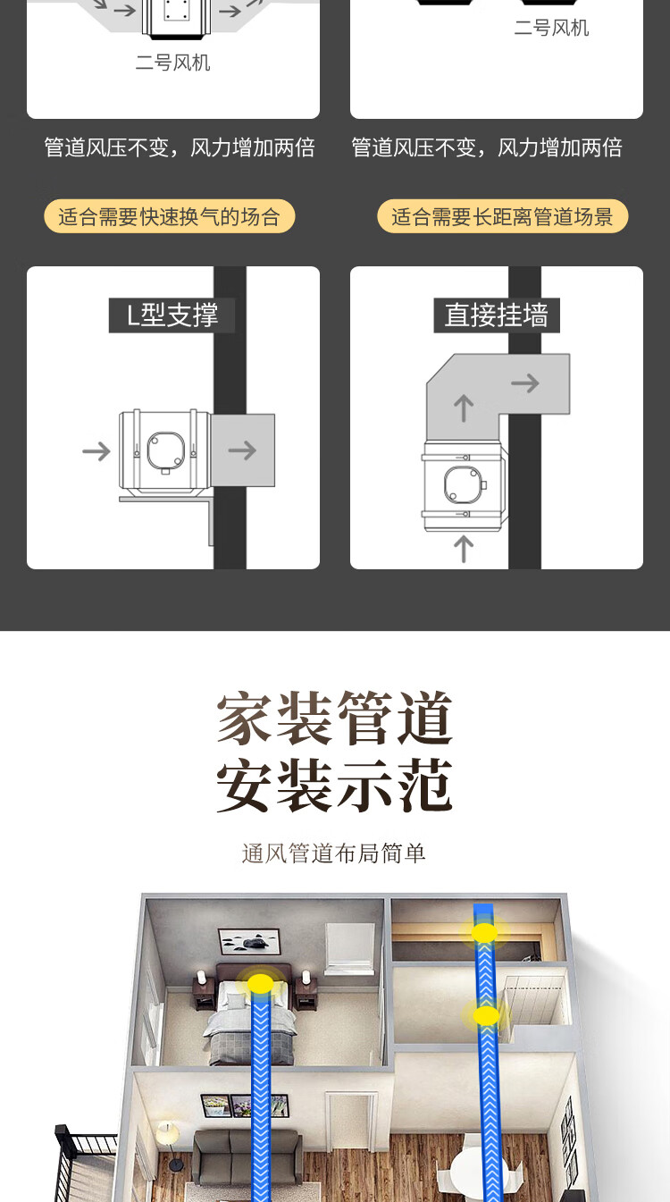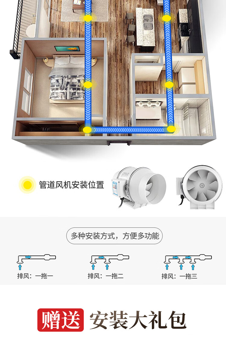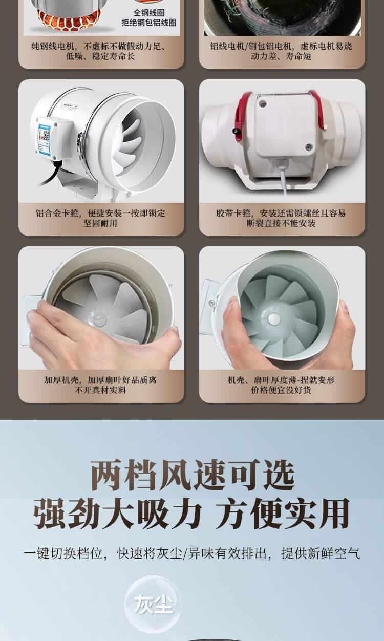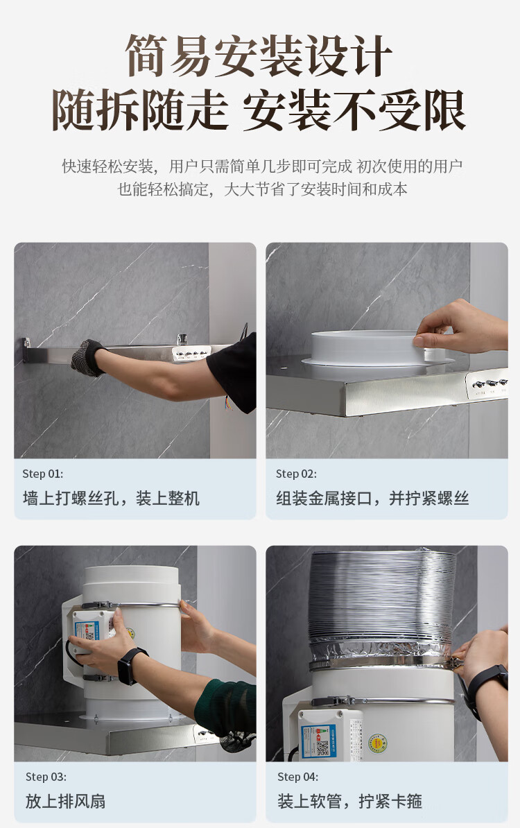 保力克厨房家电抽烟机大吸力油烟机家用不锈钢顶吸排油烟机出租房抽油烟机简易安装吸烟机 【斜流款按键款】6寸+1米管道+卡扣一个