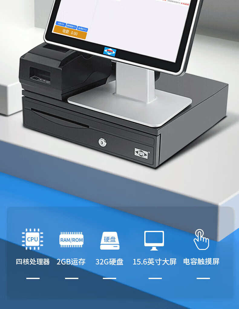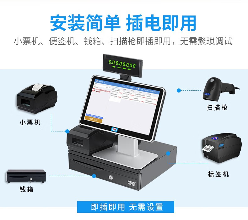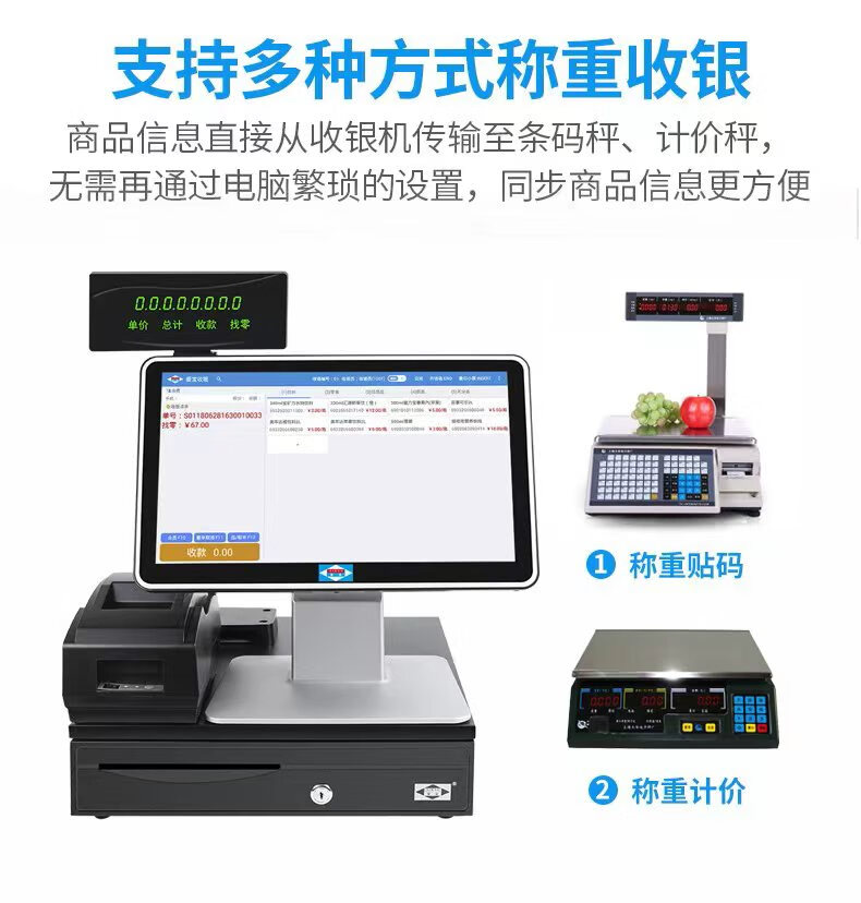 爱宝(Aibao) AB-350超市收银机一体机生鲜果蔬零售便利店收银钱箱收款机收银软件扫码收款有网无网均可使用 【称重收银】收银机+扫描枪+小票机+钱箱+计价秤 15.6英寸触摸大屏版【迎客收银】