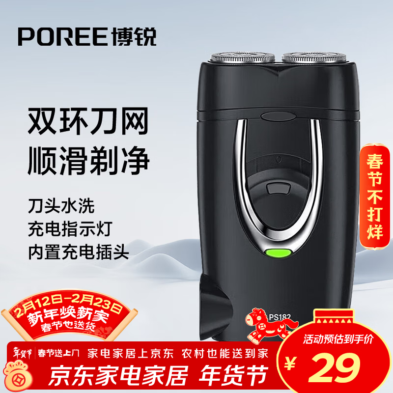 飞科博锐剃须刀电动刮胡刀充电式双刀头便携迷你须刨快充出差必备男士剃胡须刀PS182