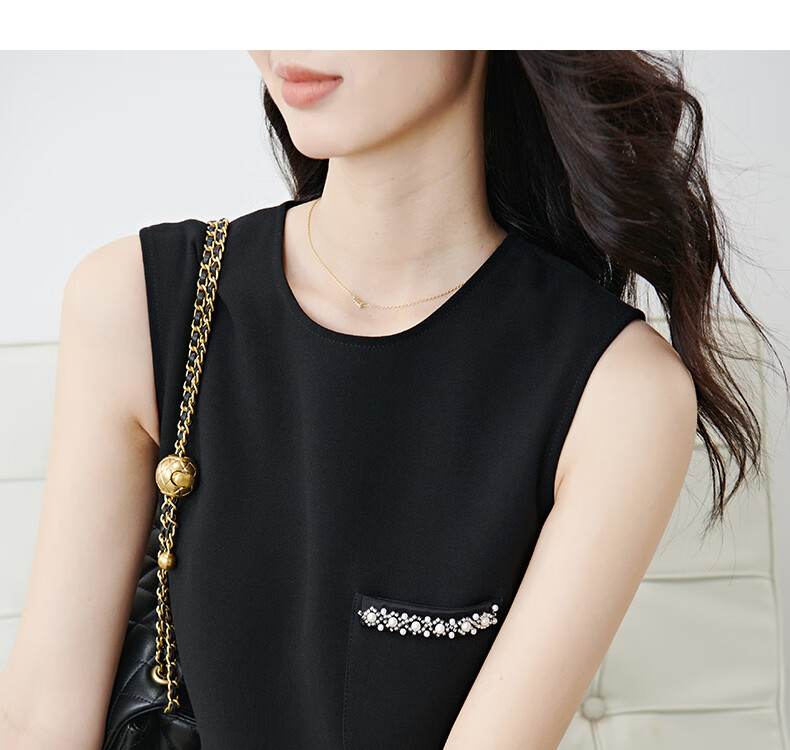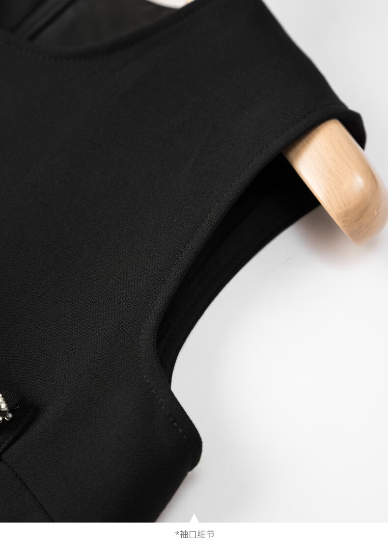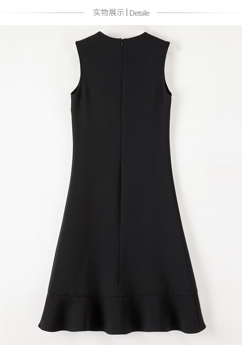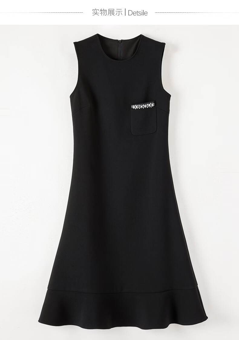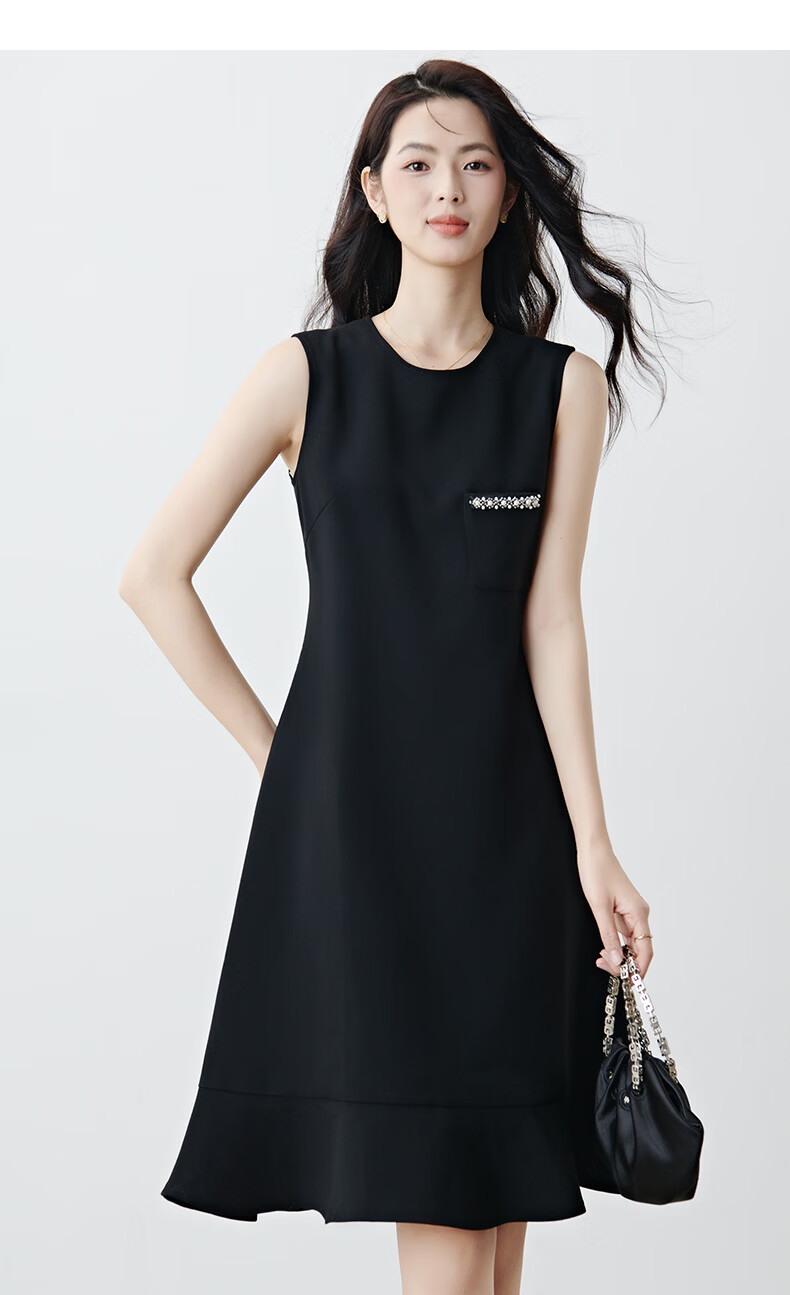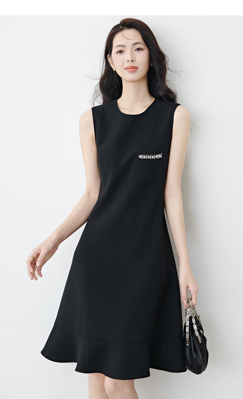 晚白【新品】冬款时尚钉珠圆领裙子修身显瘦气质百搭无袖连衣裙 黑色 L