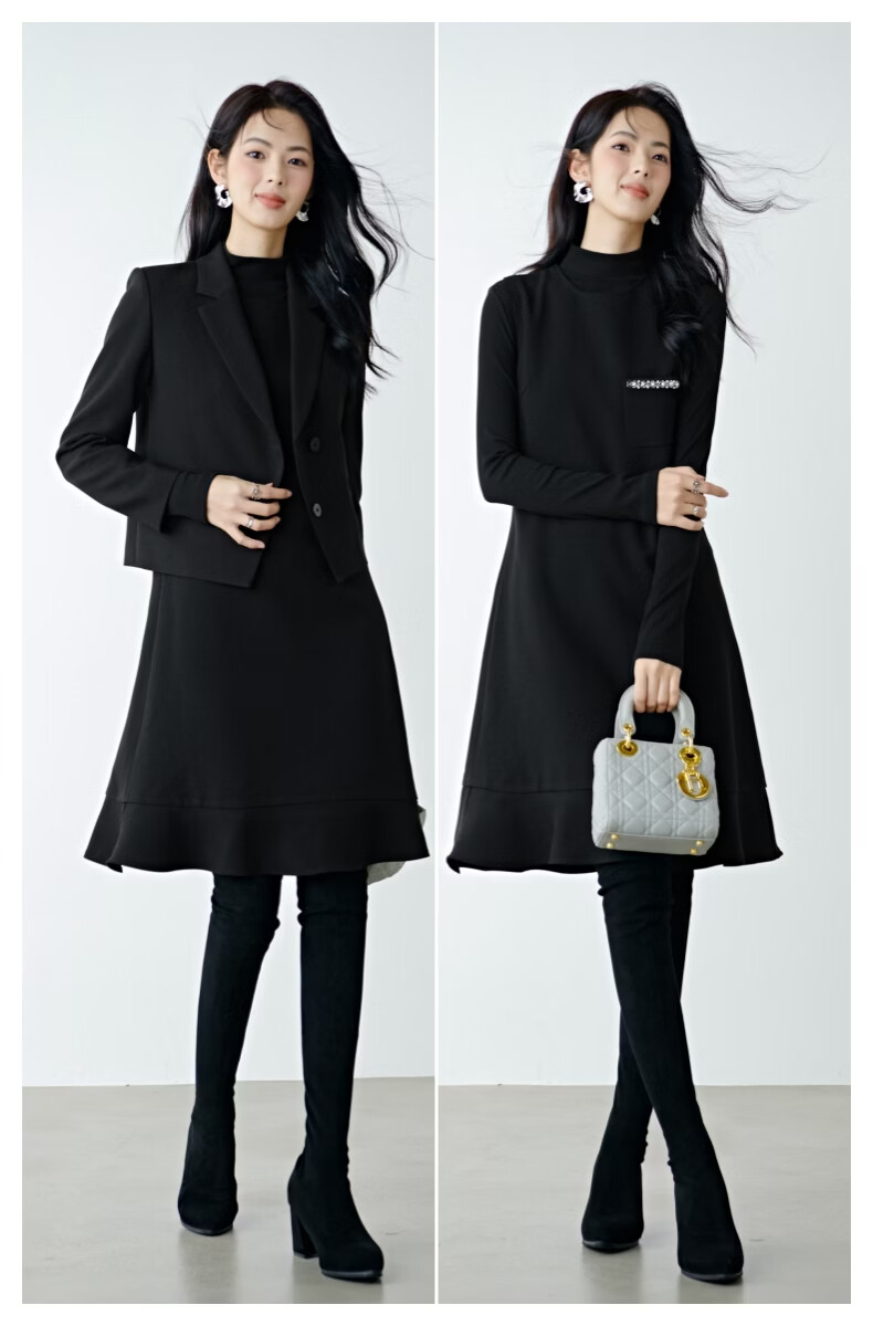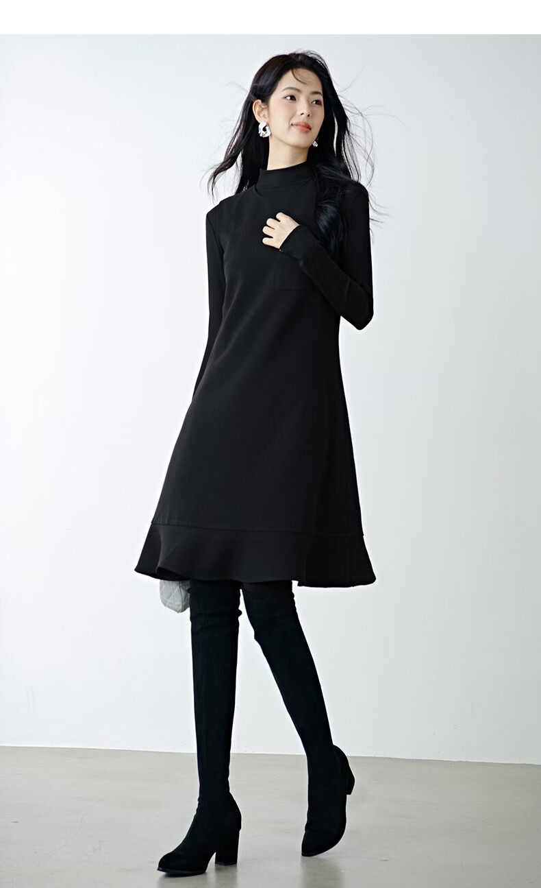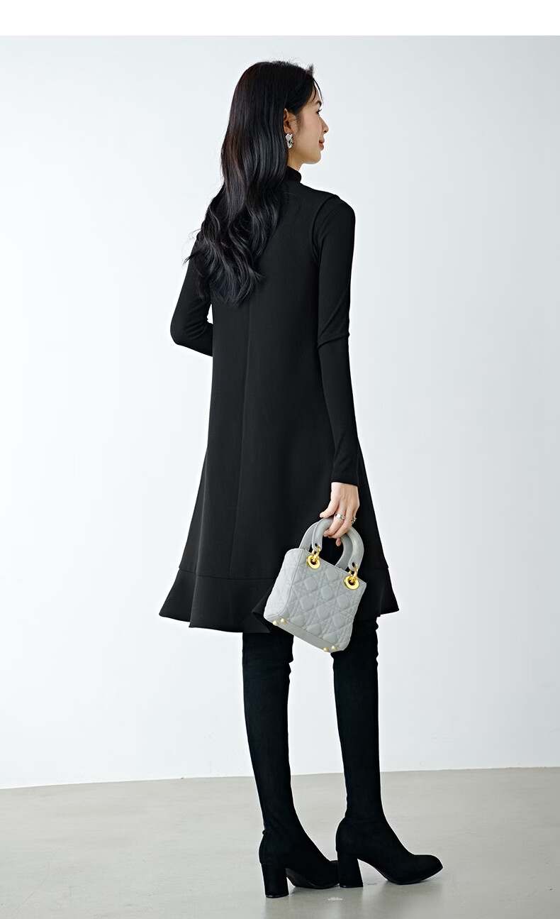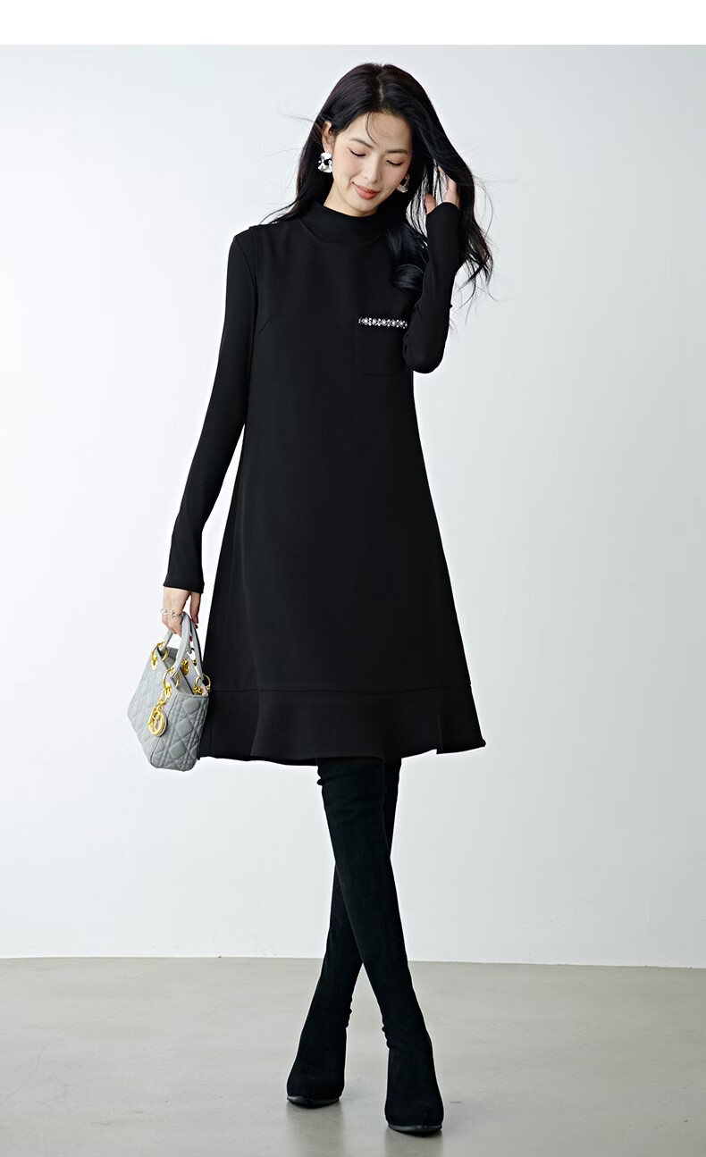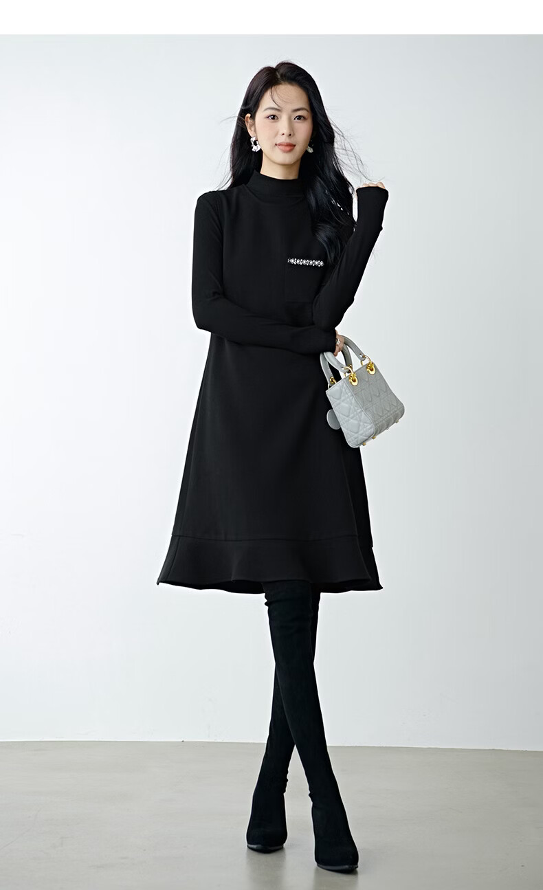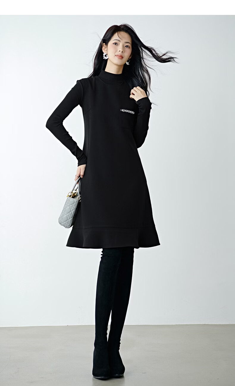 晚白【新品】冬款时尚钉珠圆领裙子修身显瘦气质百搭无袖连衣裙 黑色 L