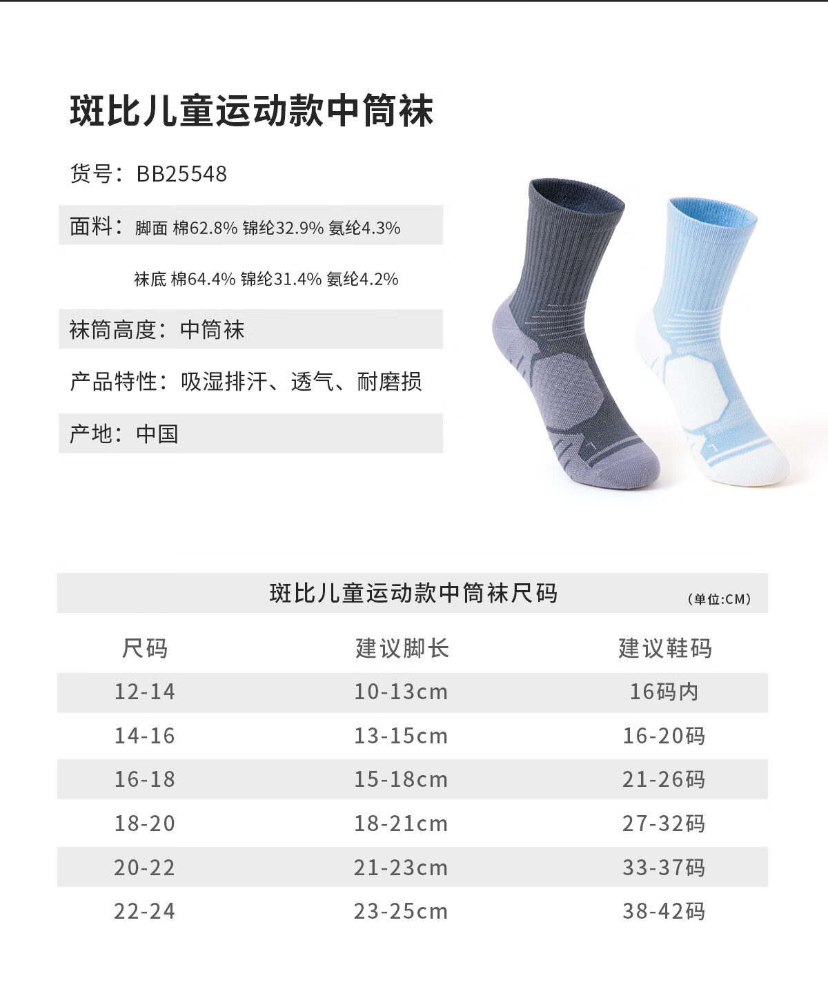 斑比男童袜运动款秋冬男孩棉袜中大童学生篮球春秋季中筒儿童袜子 BB25548 运动款儿童袜子 2双 6-8岁 建议脚码27-32码【18-20】