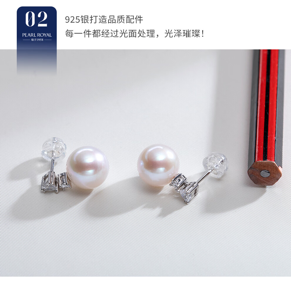 南珠宫星阶925银淡水珍珠耳环强光圆形优雅百搭新年礼物送女友 10.0-11.0mm 925银淡水珍珠耳环