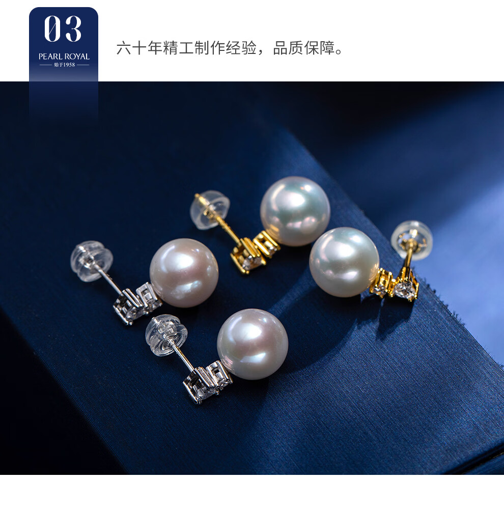 南珠宫恋光925银海水珍珠耳环南洋金珠耳钉强光近圆轻奢生日礼物送女友 10.0-11.0mm 925银海水珍珠耳环