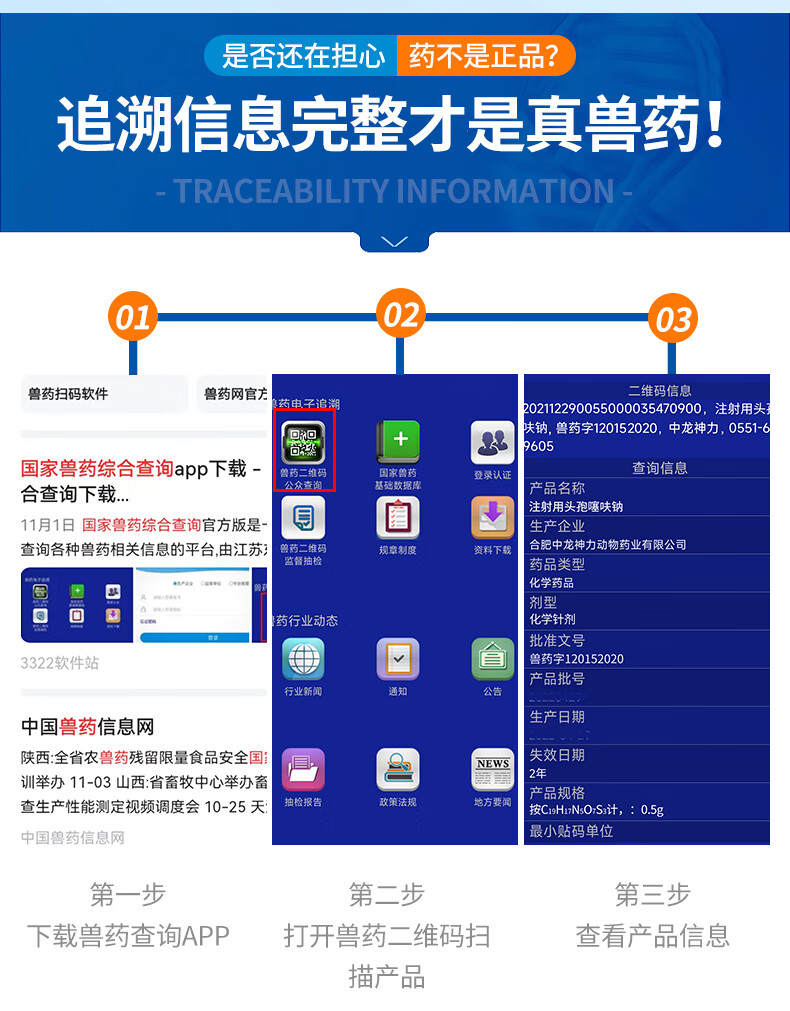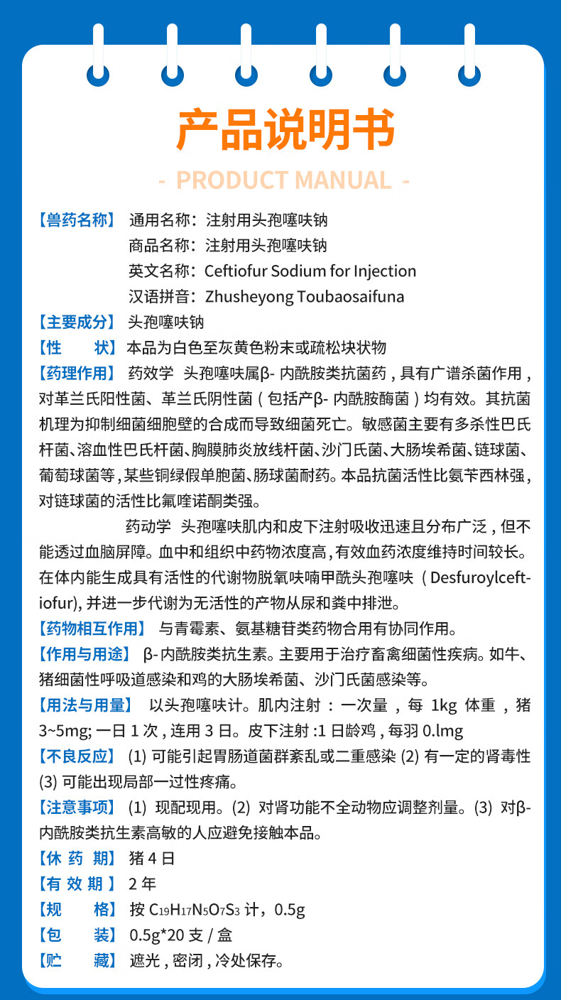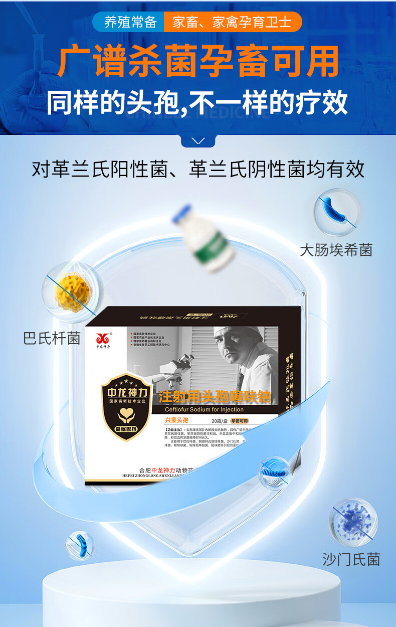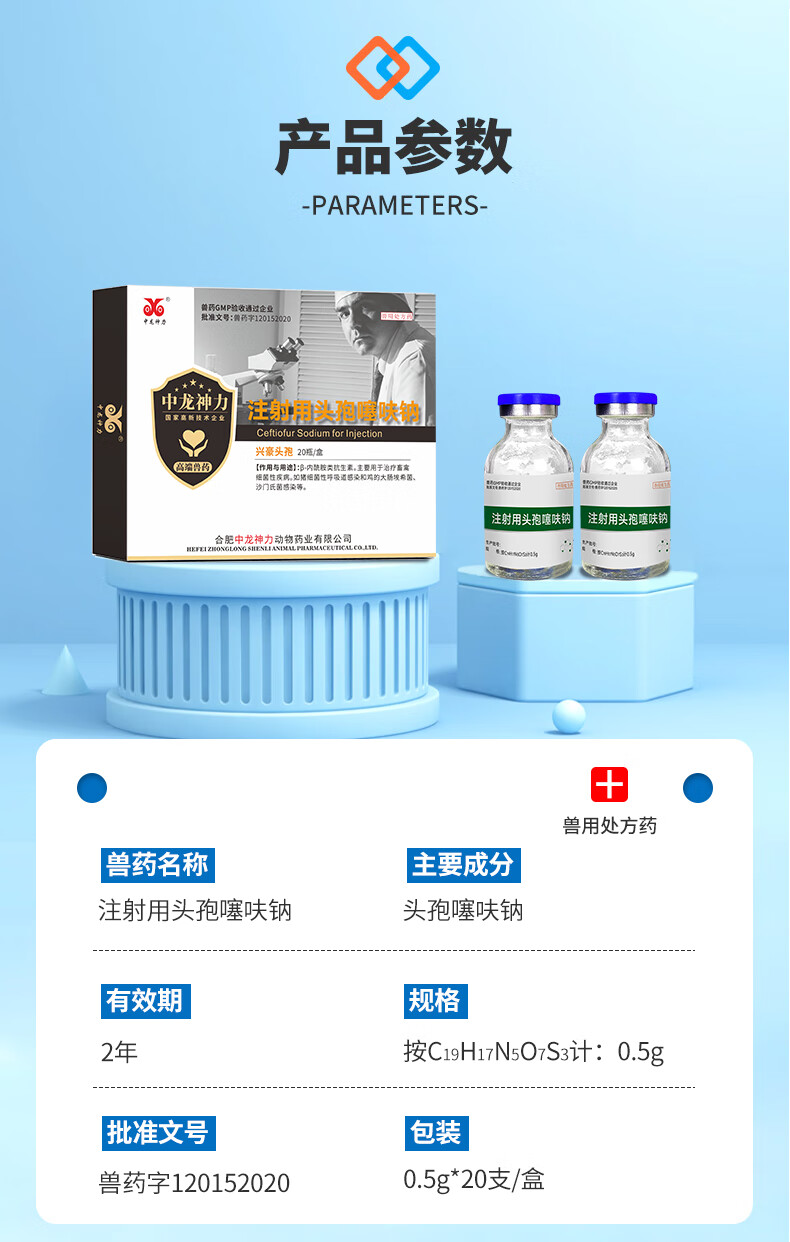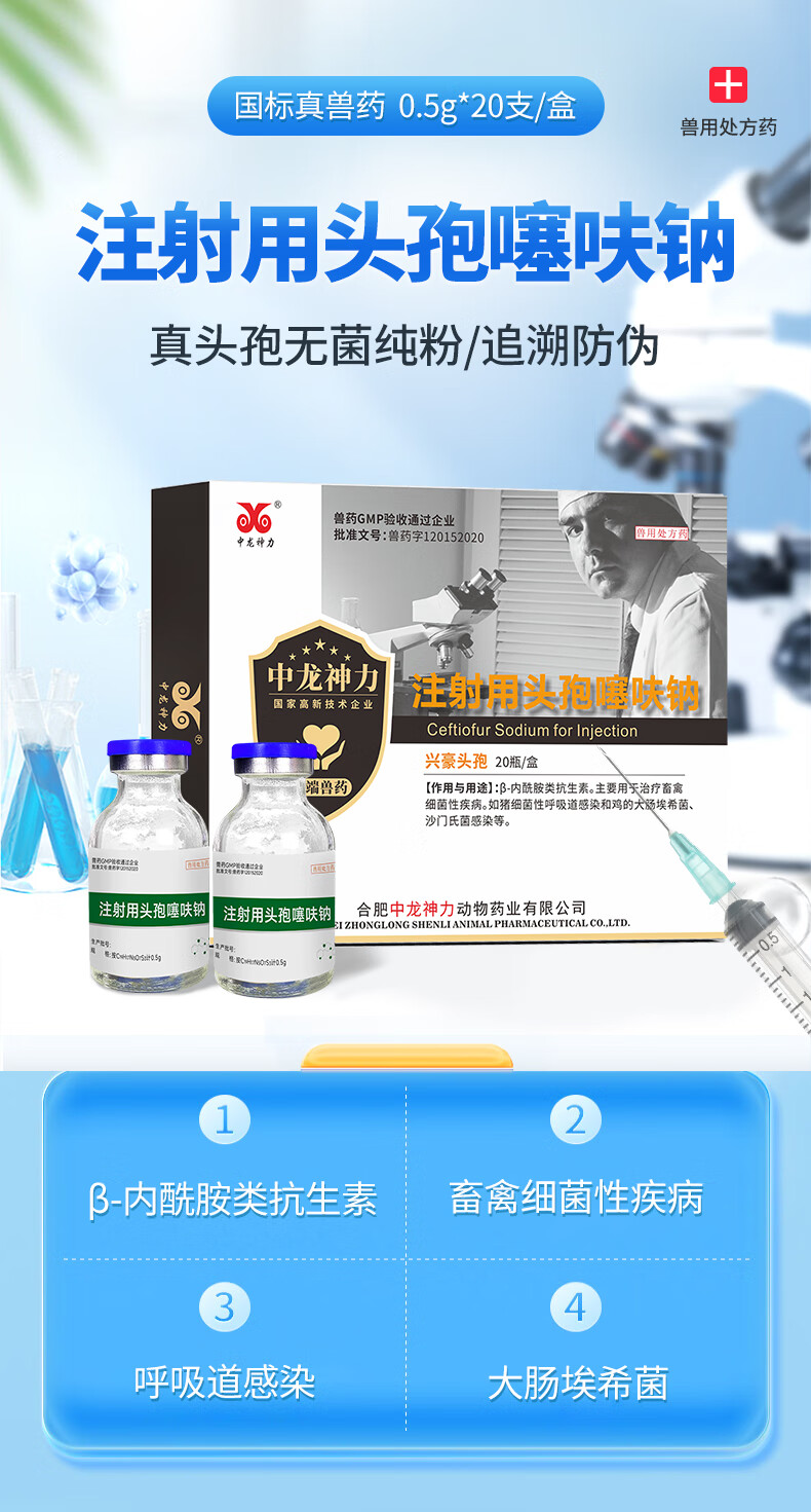 中龙神力头孢噻呋钠兽用 兽药猪用牛羊产后消炎药注射用头孢噻呋钠注射液 【1盒】