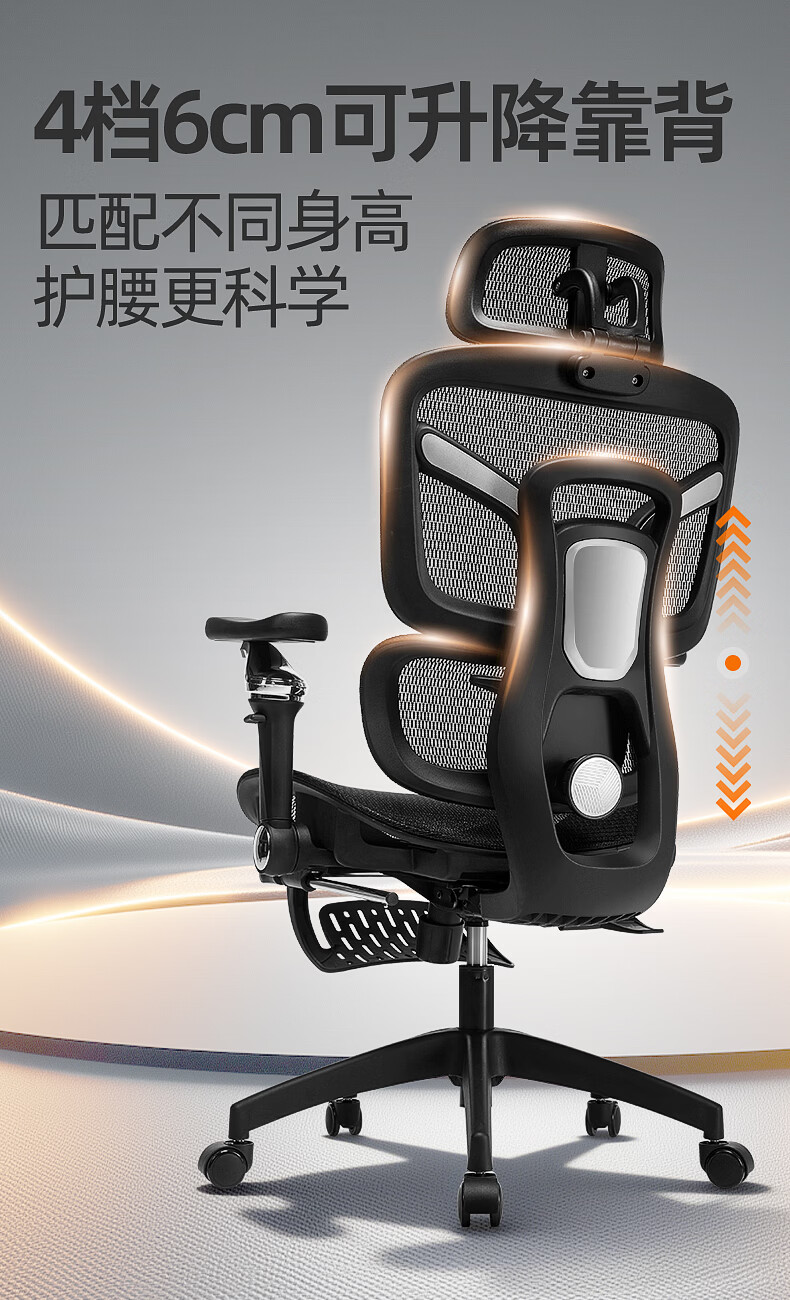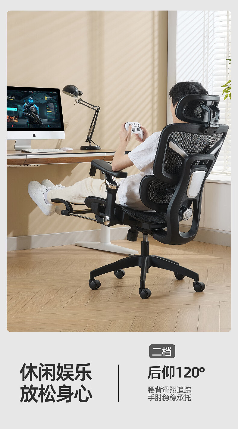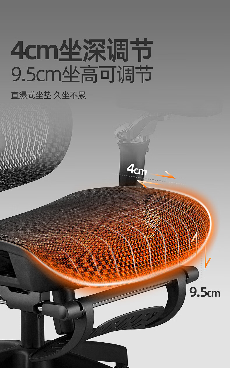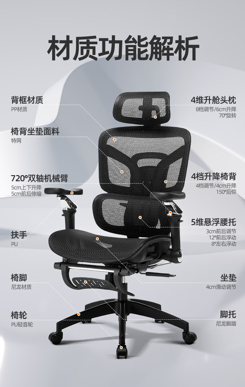 博泰 电脑椅 人体工学椅家用电脑椅午休可躺椅透气网办公转椅929黑色