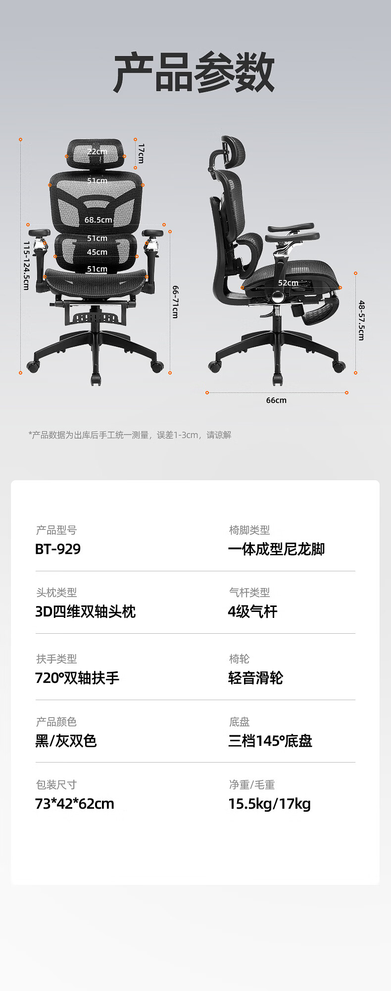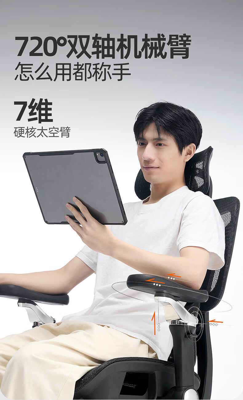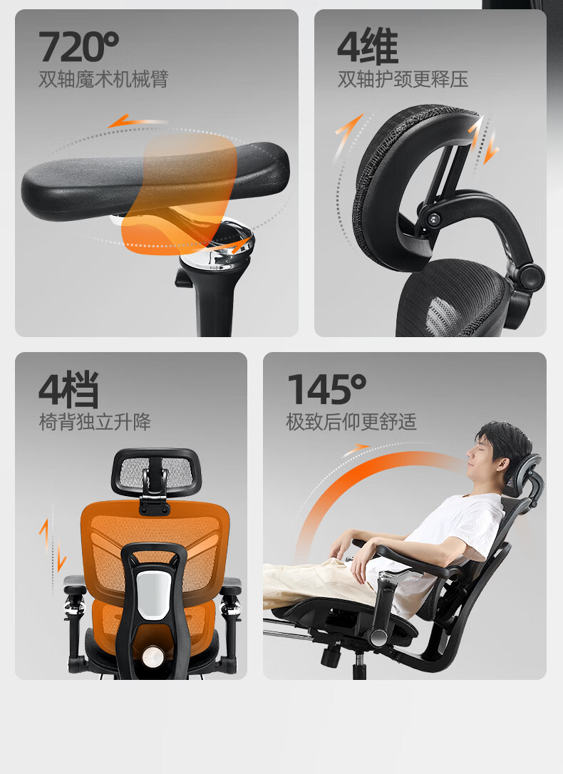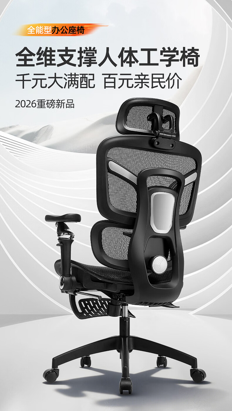 博泰 电脑椅 人体工学椅家用电脑椅午休可躺椅透气网办公转椅929黑色