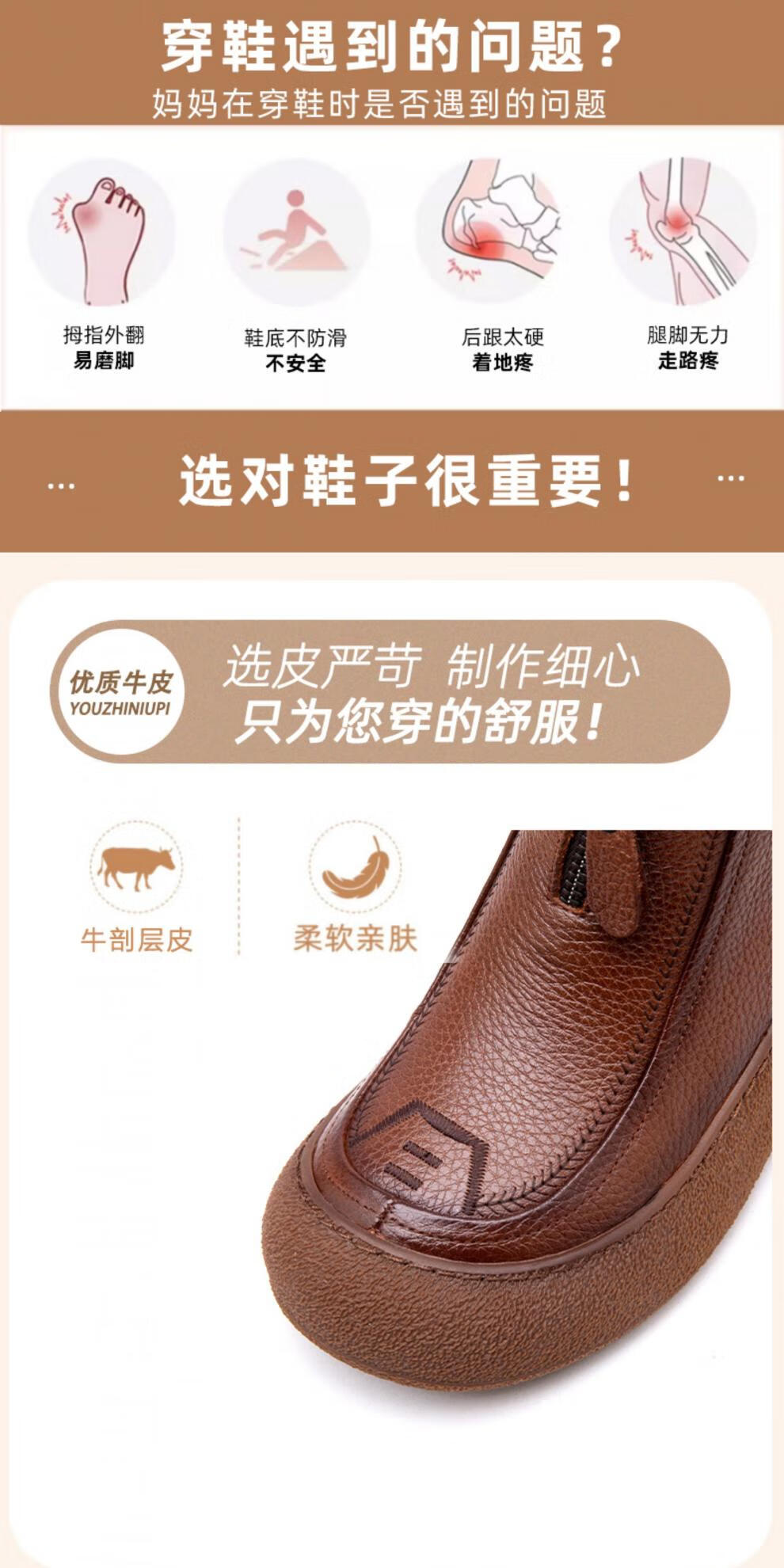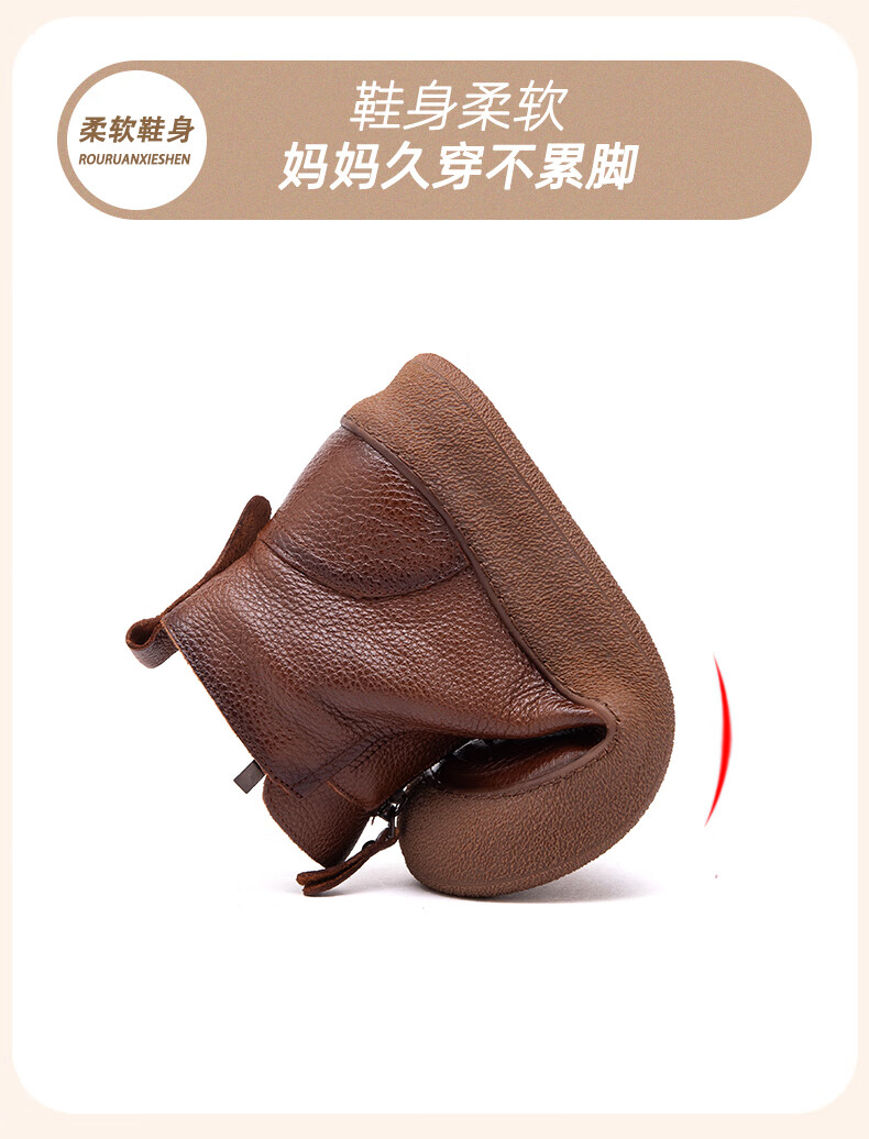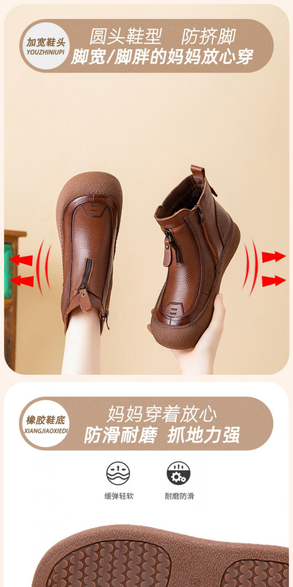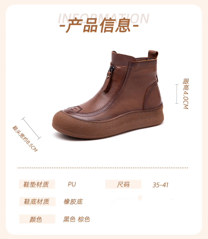 稻草人(MEXICAN)复古真皮厚底马丁靴女2026秋冬新款加绒保暖小短靴软底舒适妈妈鞋 黑色加绒 35