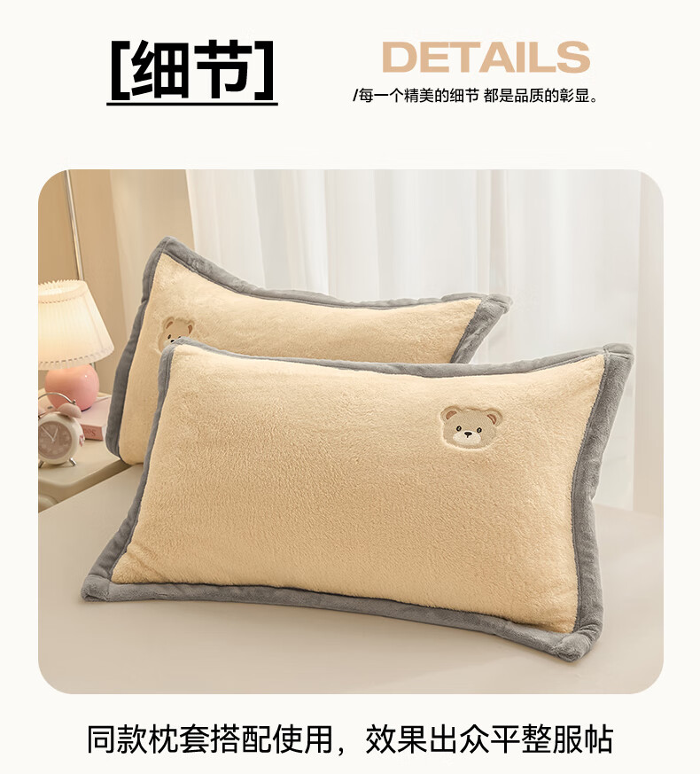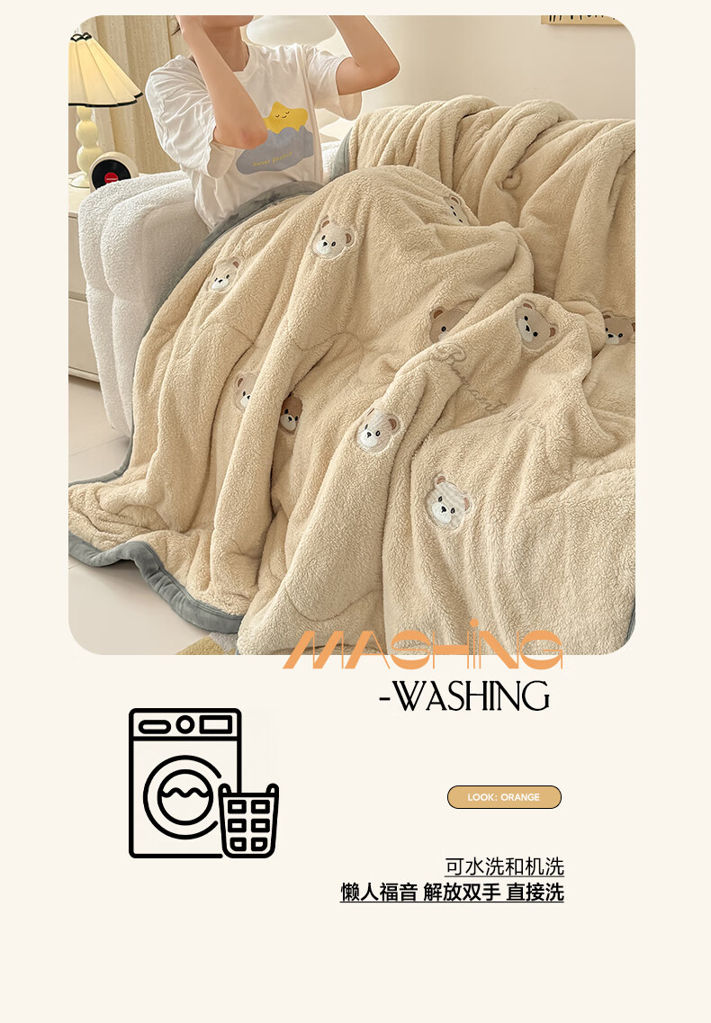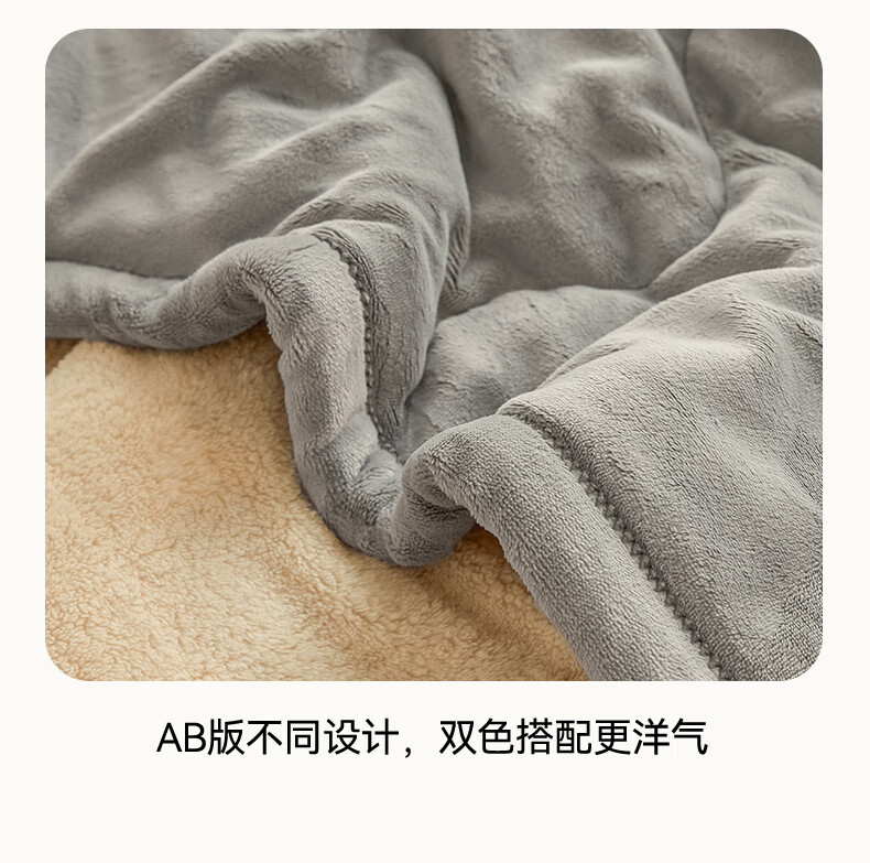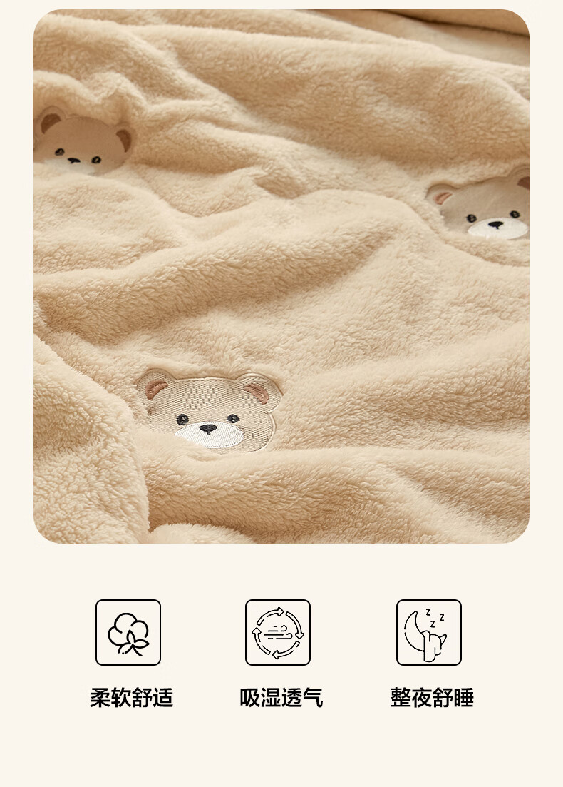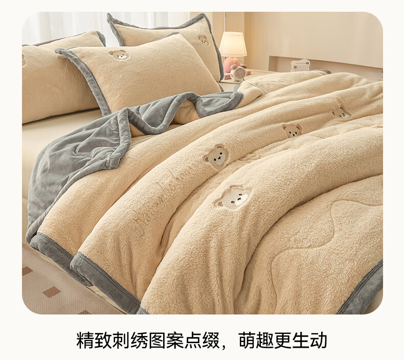 猫人(MiiOW)牛奶绒夹棉毛毯被加厚冬季沙发毯子盖毯办公室午睡毯单双人宿舍 小熊-香槟+经典灰【软糯保暖】 120×200cm【单人盖毯】