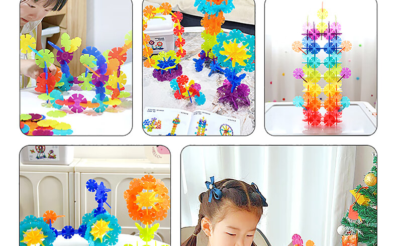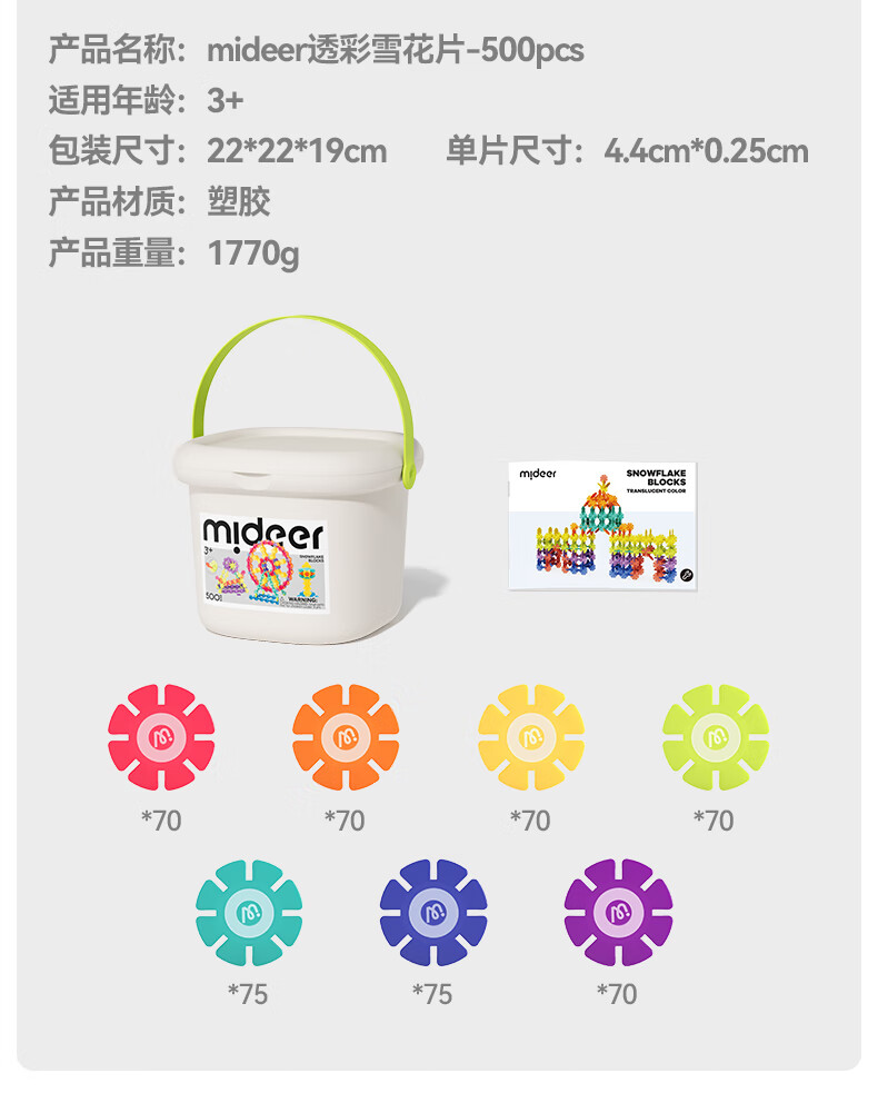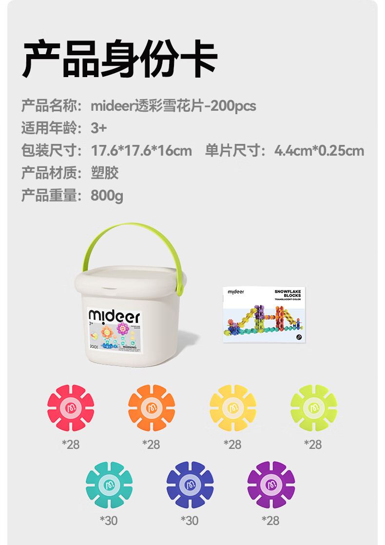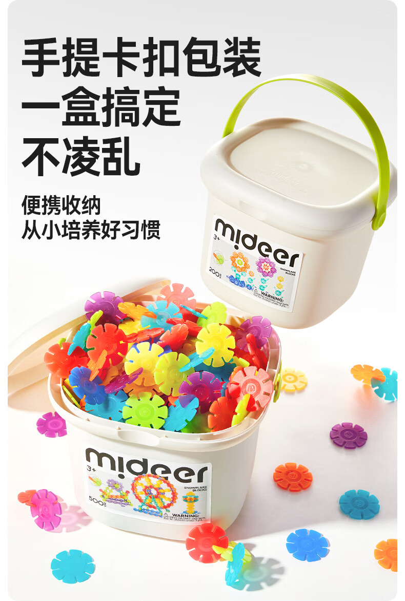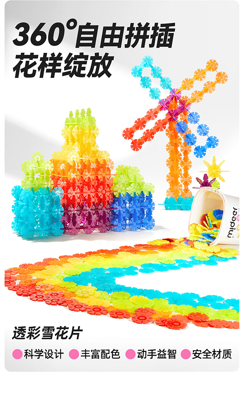 弥鹿(MiDeer)积木拼装手工diy拼插玩具男孩女孩礼物透彩雪花片-200pcs儿童礼物