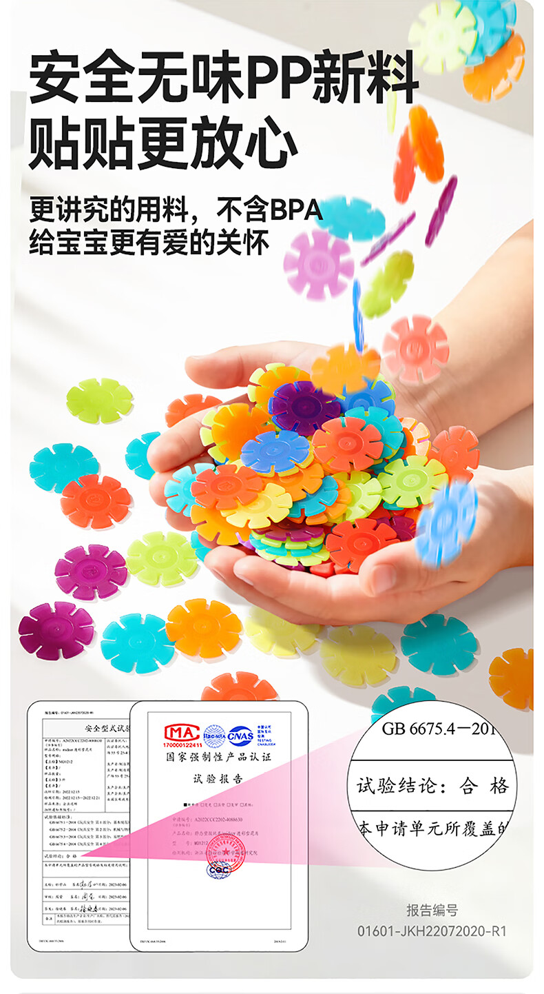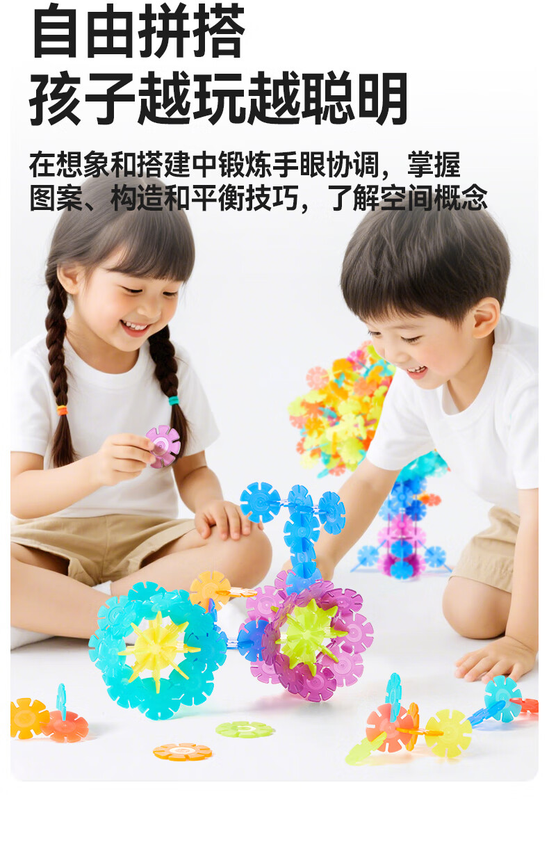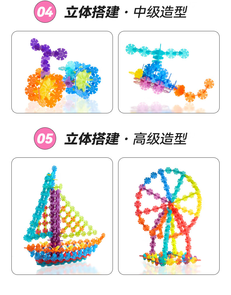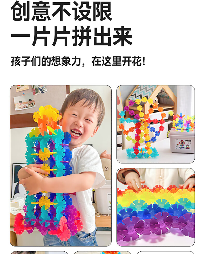 弥鹿(MiDeer)积木拼装手工diy拼插玩具男孩女孩礼物透彩雪花片-200pcs儿童礼物