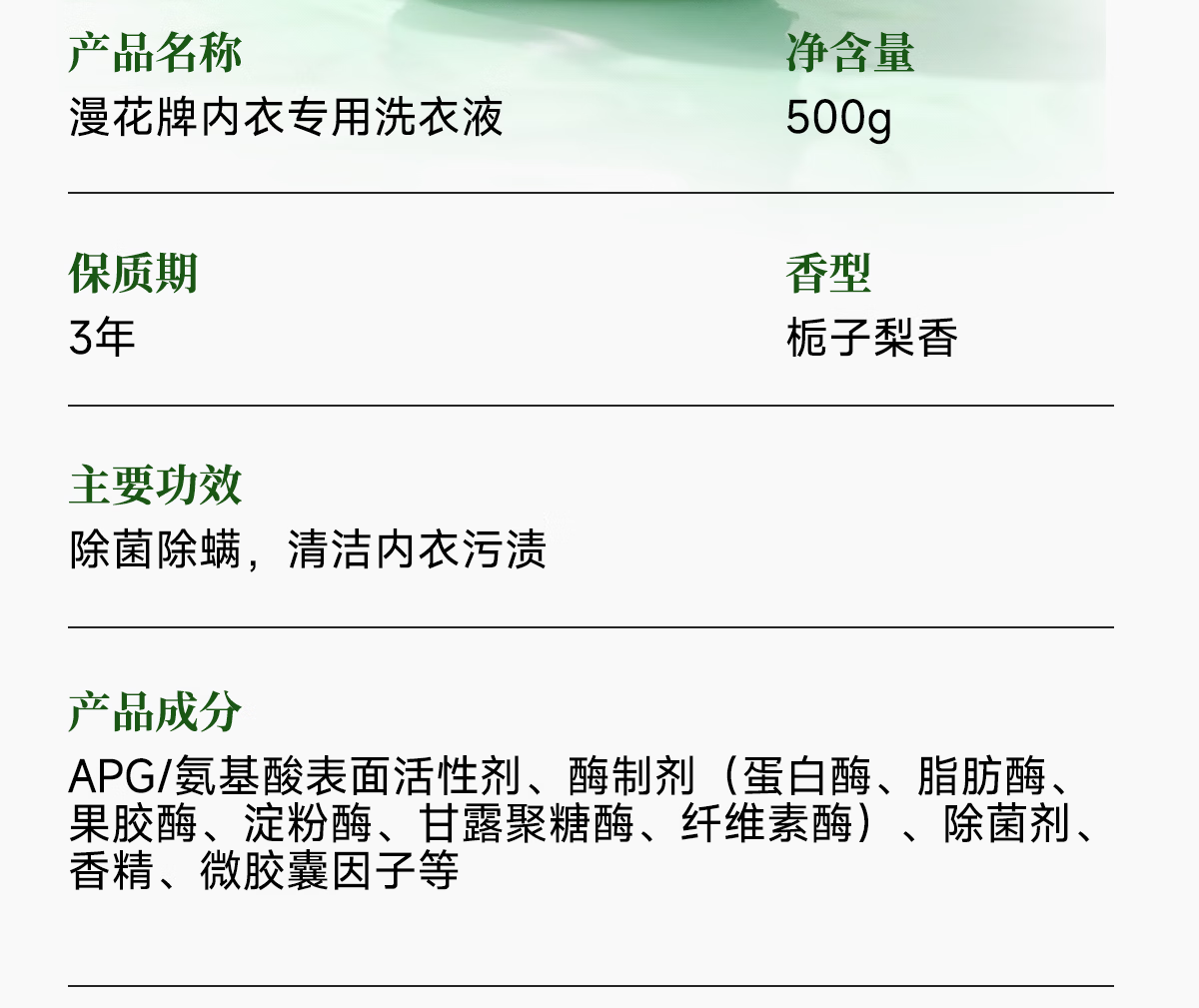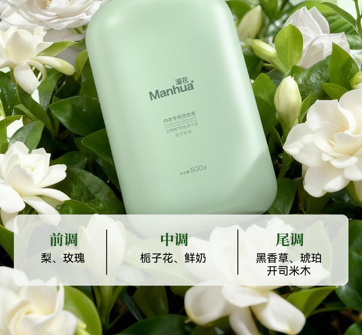 漫花内衣洗衣液持久留香深层洁净去污护色除菌去渍z 【栀子莉香】500g*1瓶