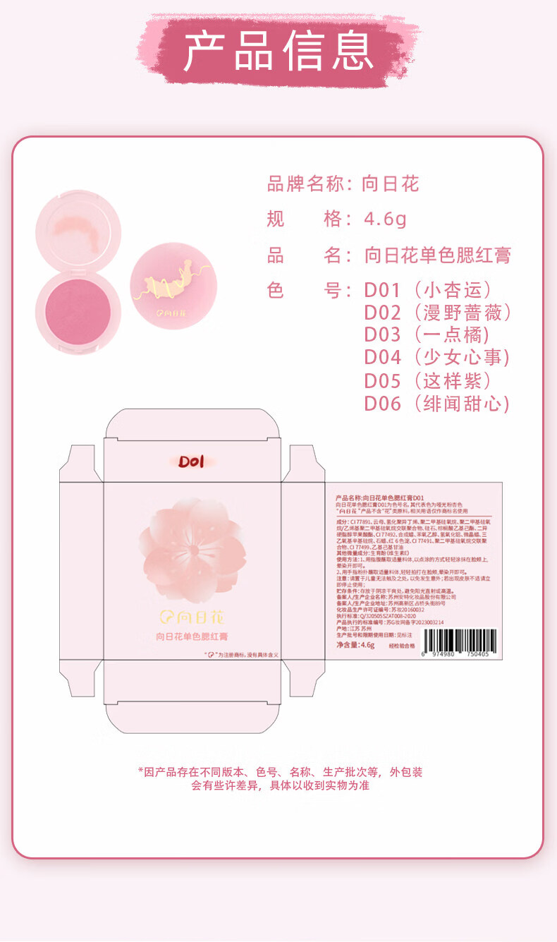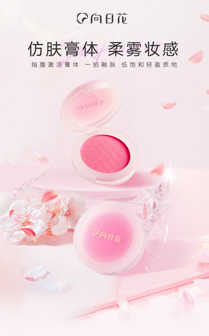 向日花腮红膏泥膨胀收缩色哑光裸色腮红显白单色多用膏黄皮显白 D02漫野蔷薇