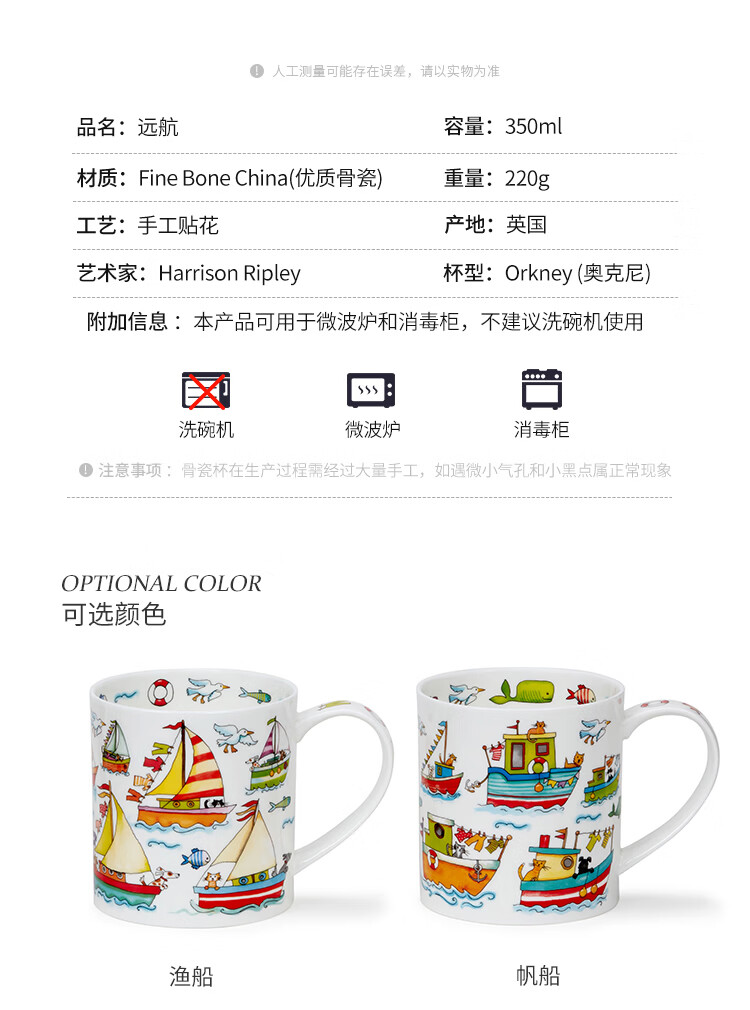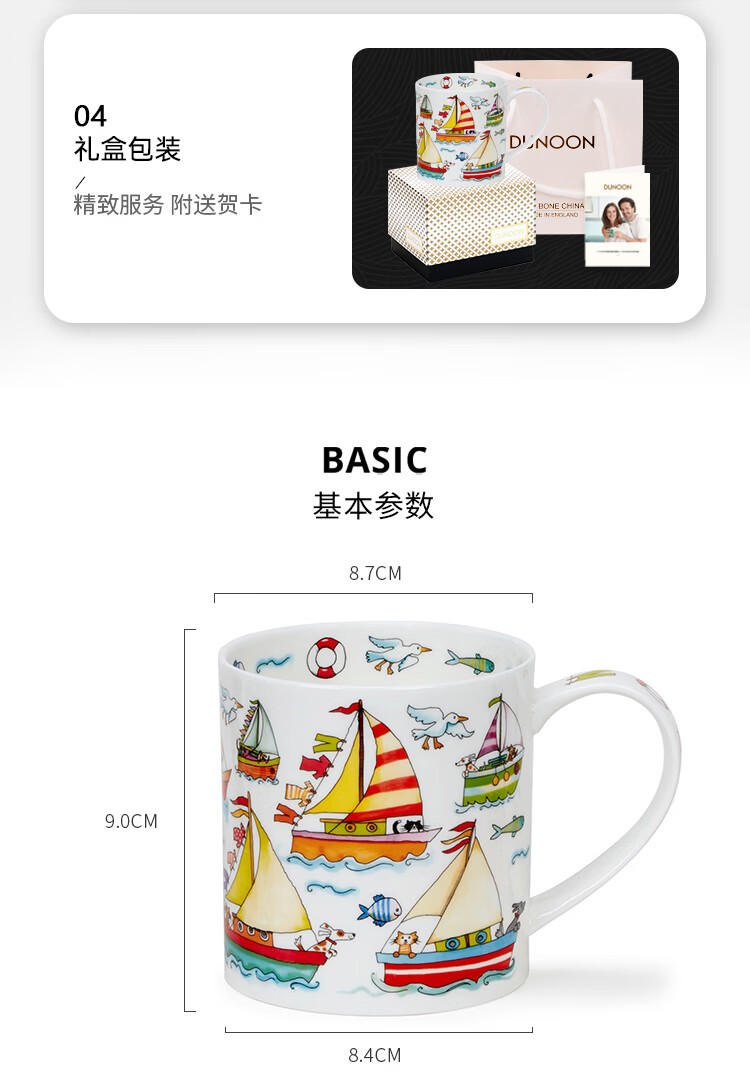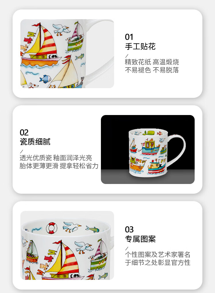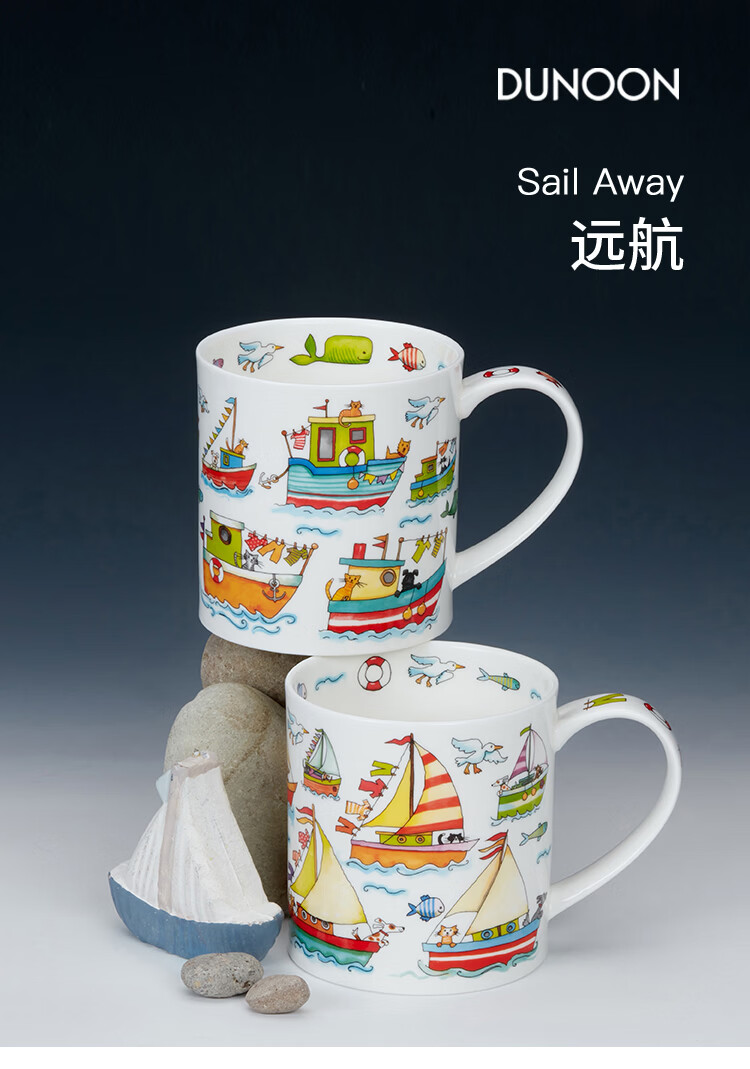 丹侬(DUNOON)骨瓷马克杯陶瓷咖啡杯 英国杯子 远航杯插画水杯情侣杯创意礼物 远航-渔船 350ml
