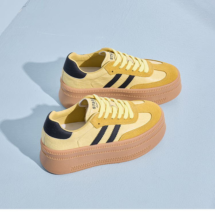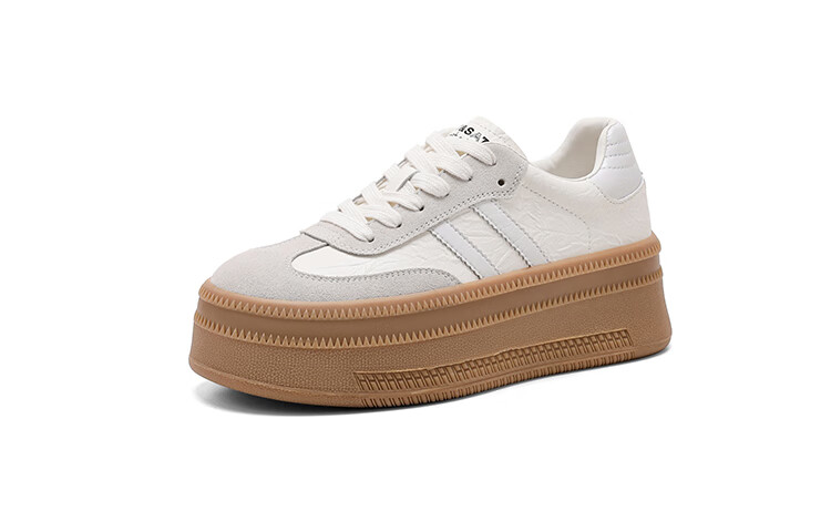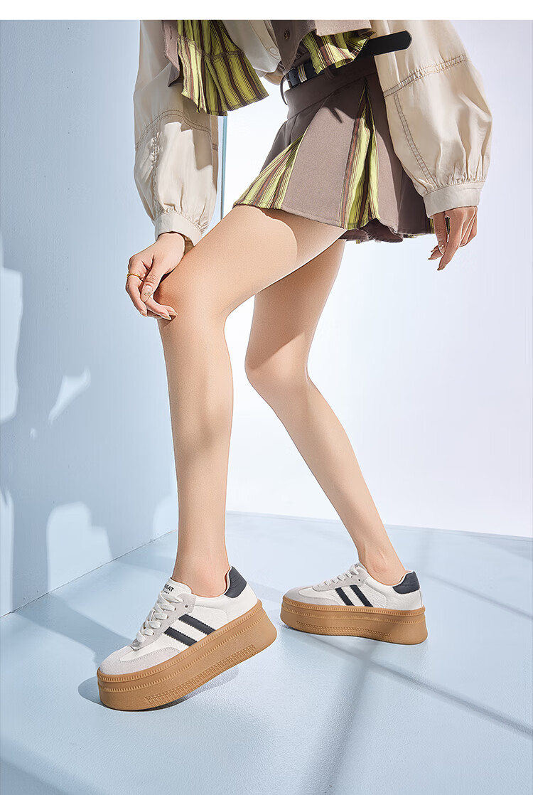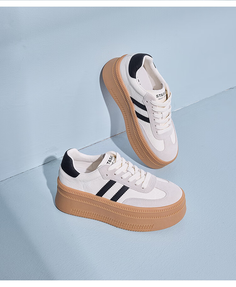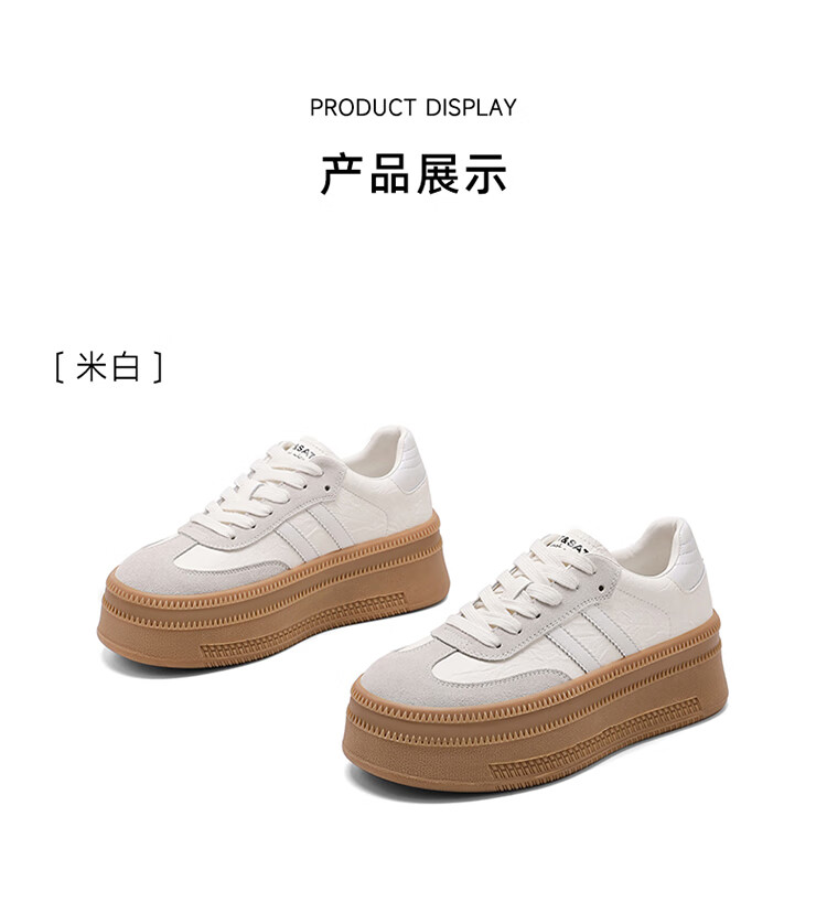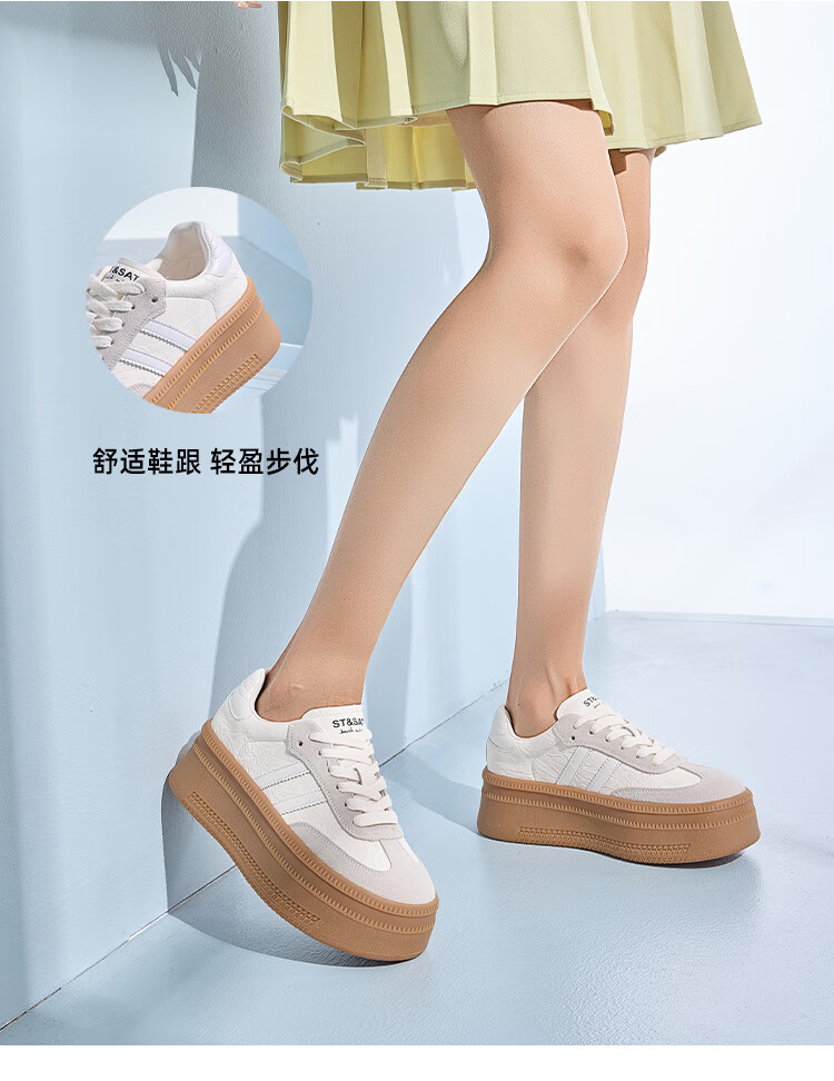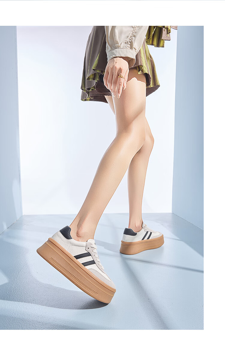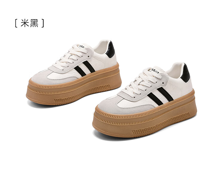 星期六厚底德训鞋女款2025新款百搭复古小白鞋小个子增高休闲板鞋 米/黑 35