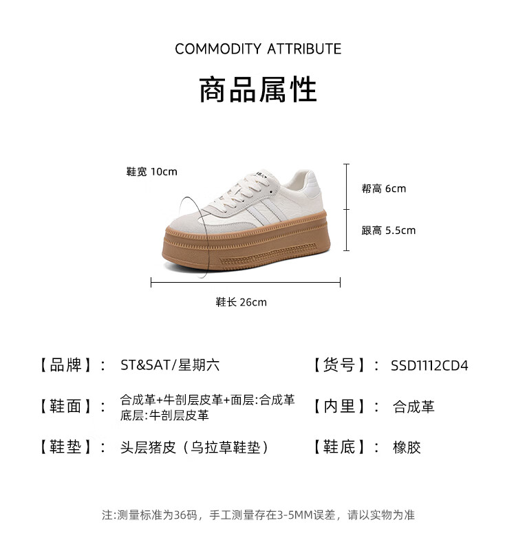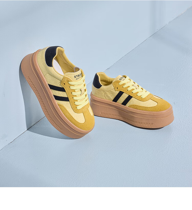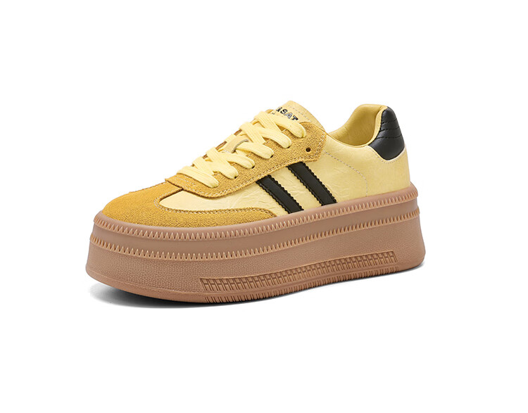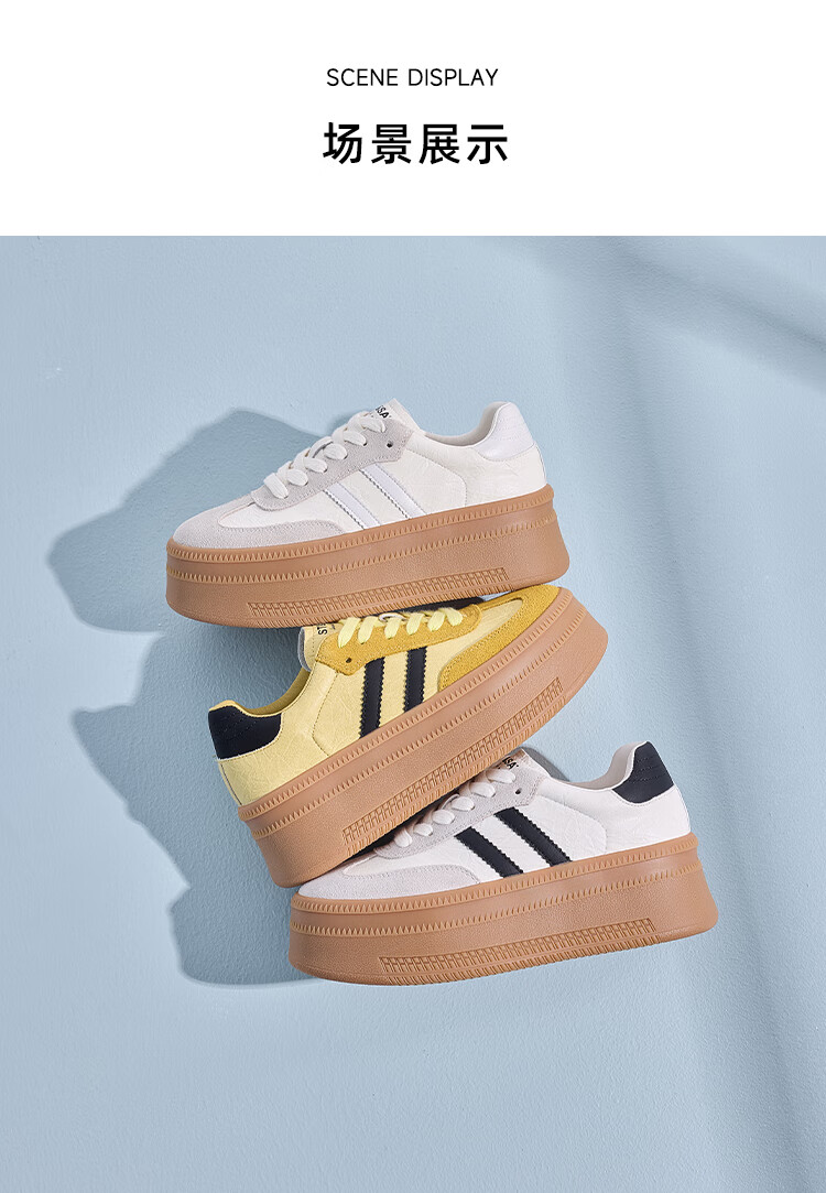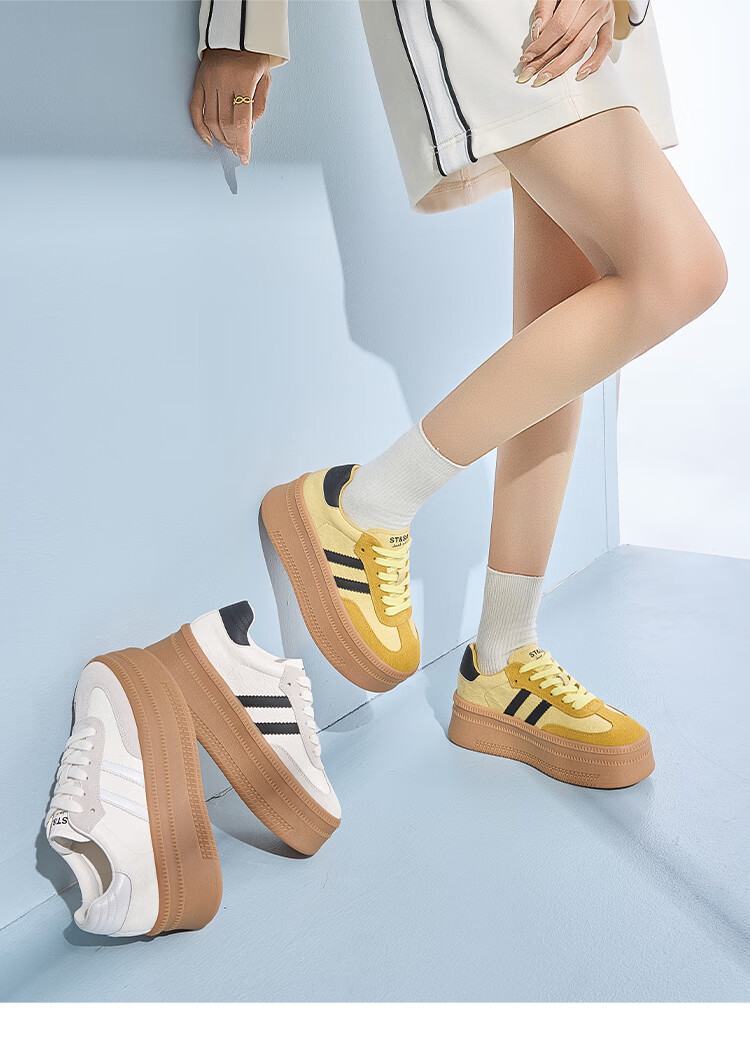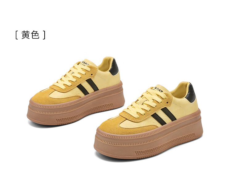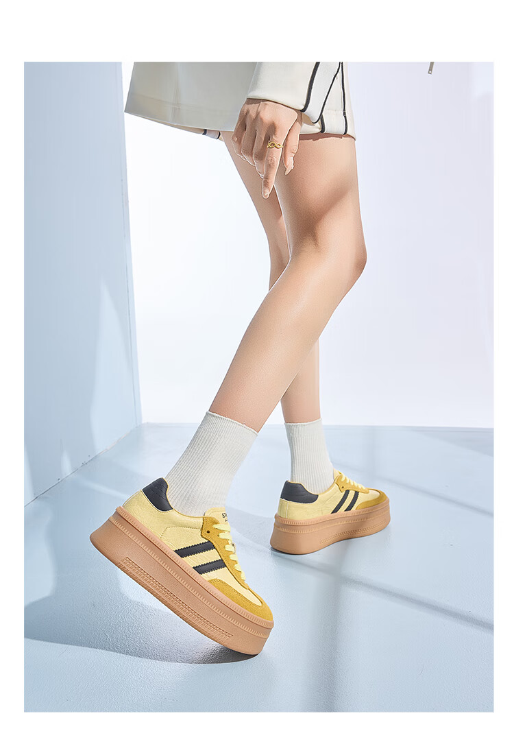 星期六厚底德训鞋女款2025新款百搭复古小白鞋小个子增高休闲板鞋 米/黑 35