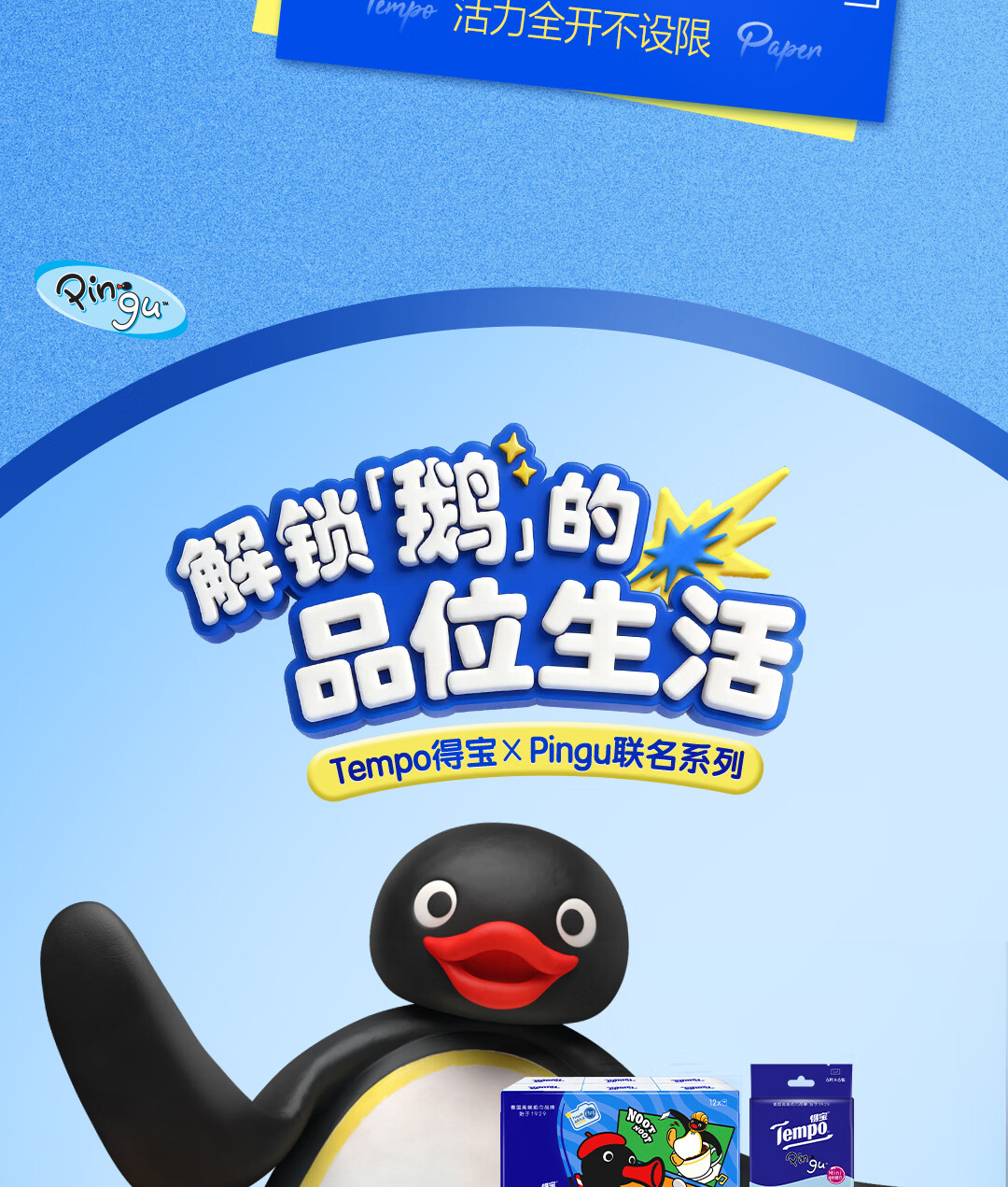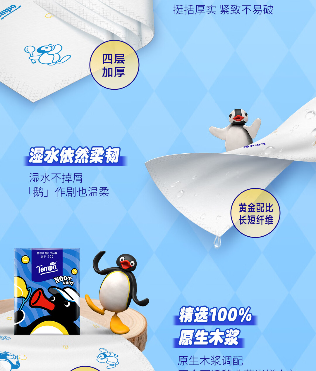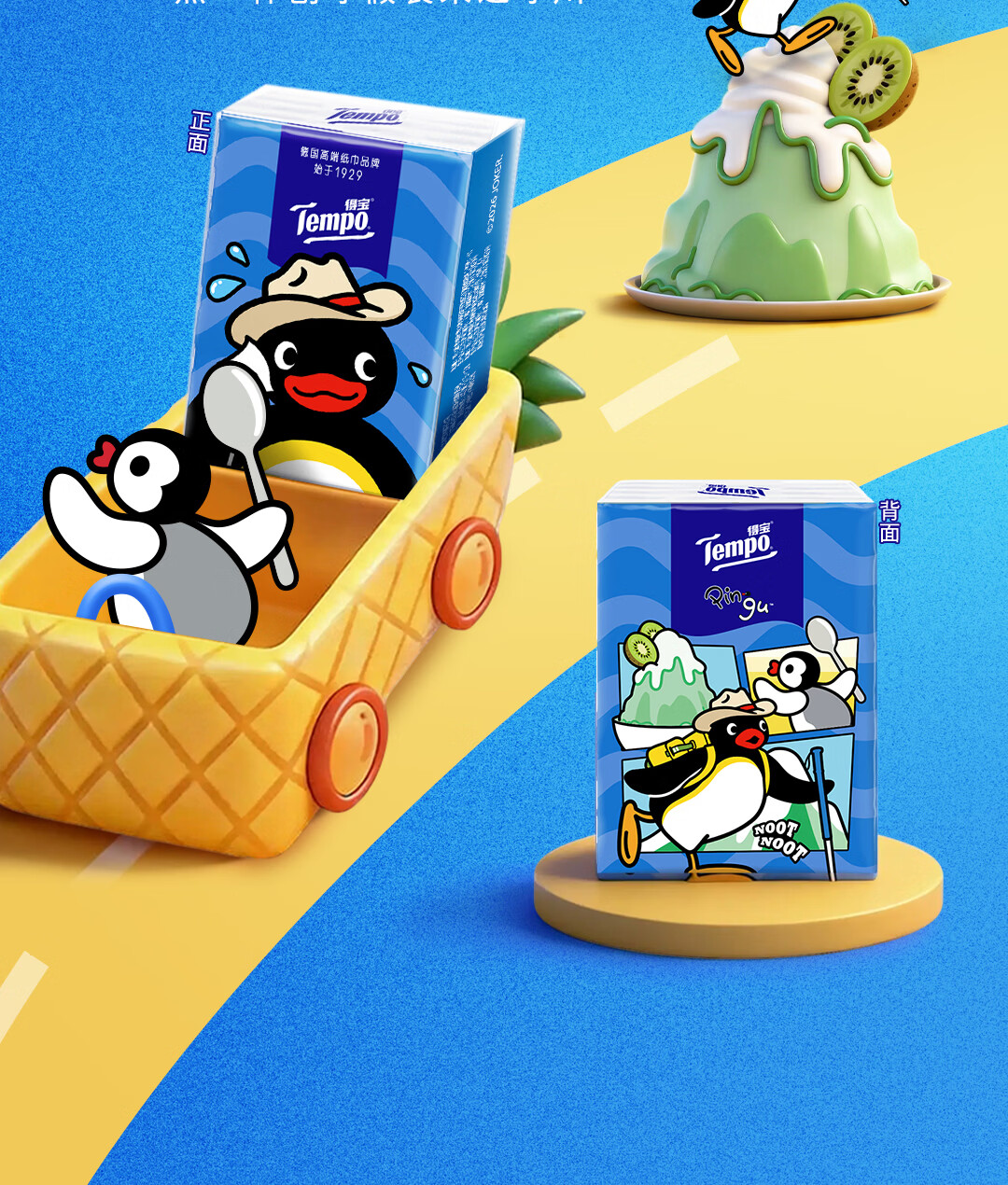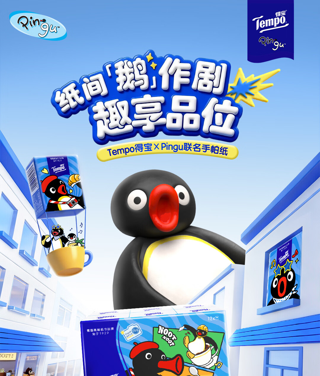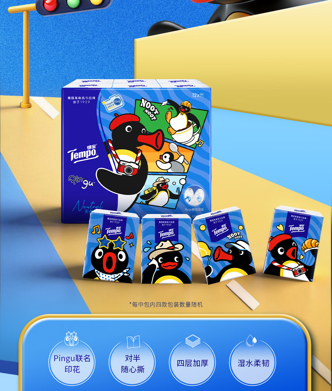得宝(TEMPO)Pingu联名款手帕纸 4层7张*12包 企鹅印花无香纸手帕 面巾纸