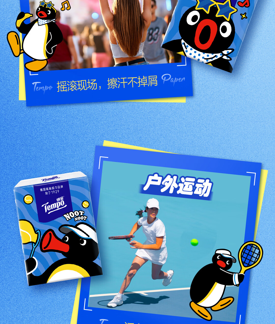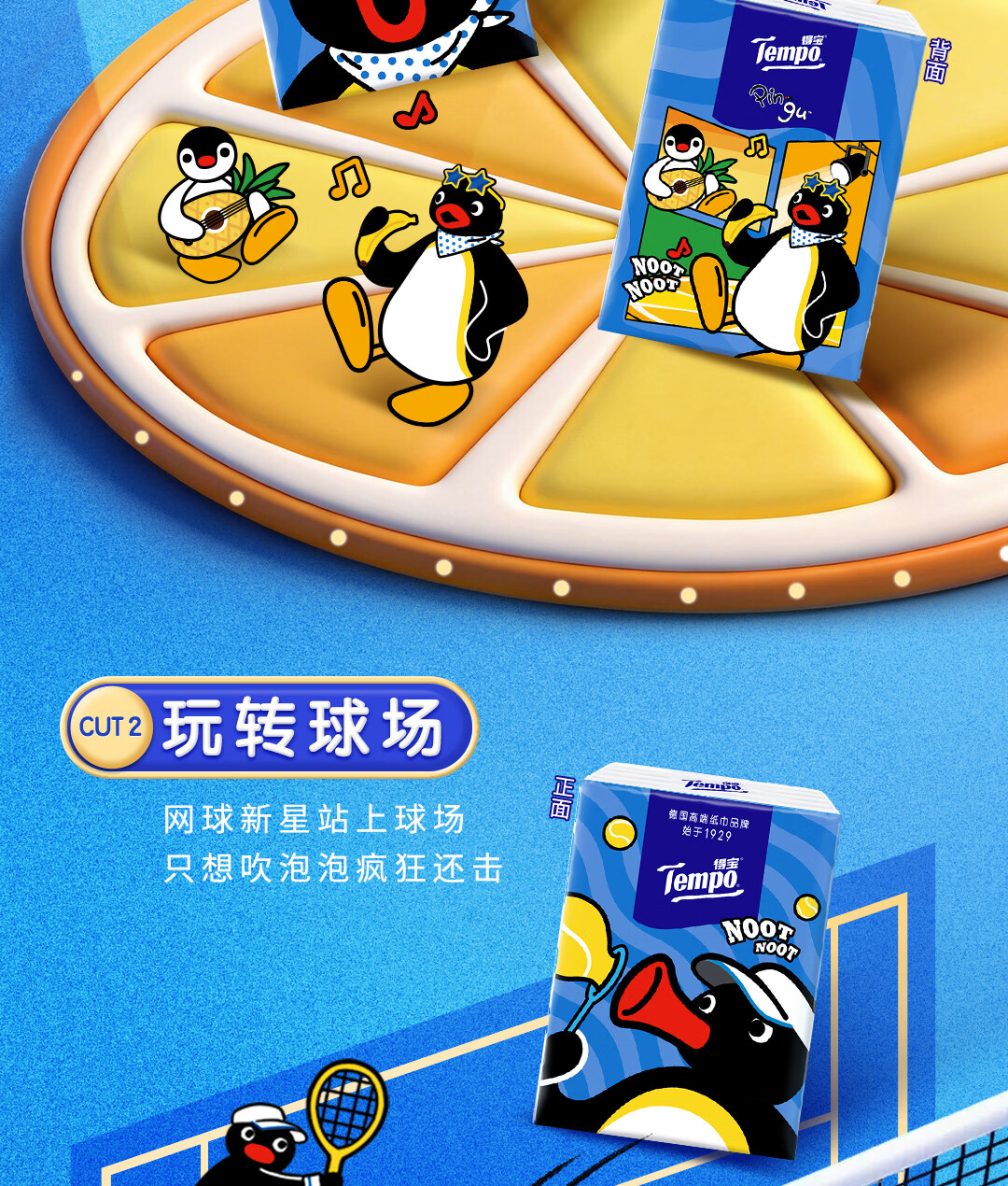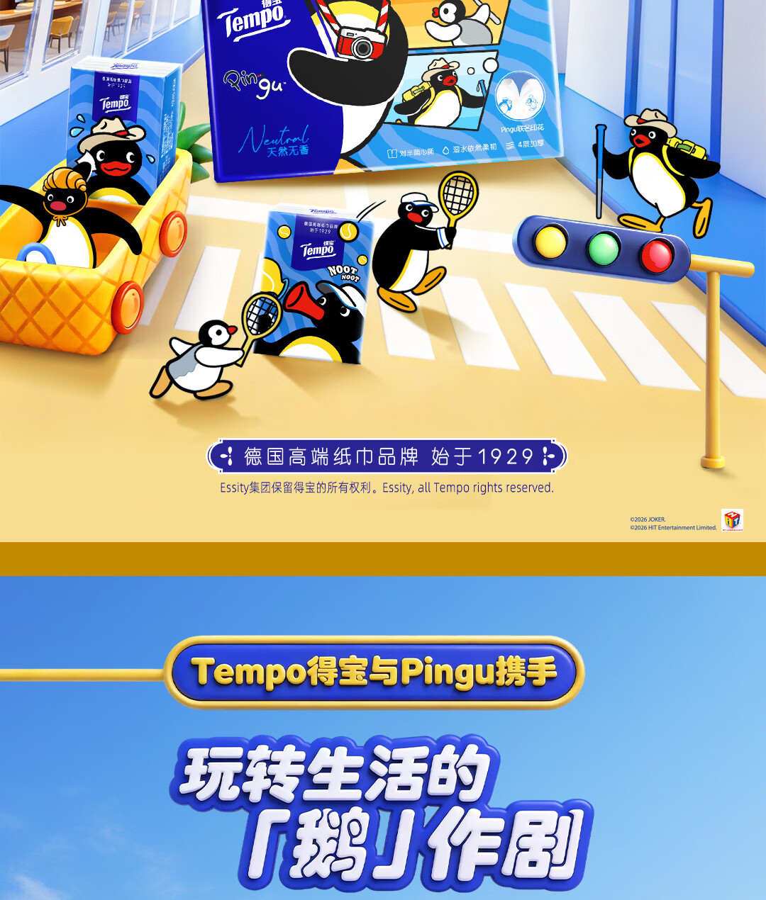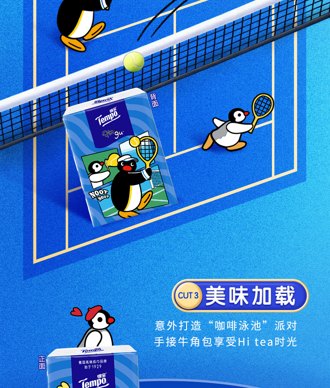 得宝(TEMPO)Pingu联名款手帕纸 4层7张*12包 企鹅印花无香纸手帕 面巾纸